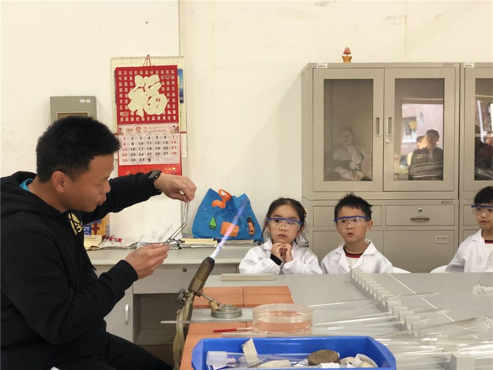 小小实验师们做完实验后对实验用品十分感兴趣,常听到三三两两的讨论声“做实验的工具叫什么呀?这些工具是从哪里来的啊?”带着这些疑问我们跟随宏轩爸爸来到了化院的“玻璃吹制室” 。