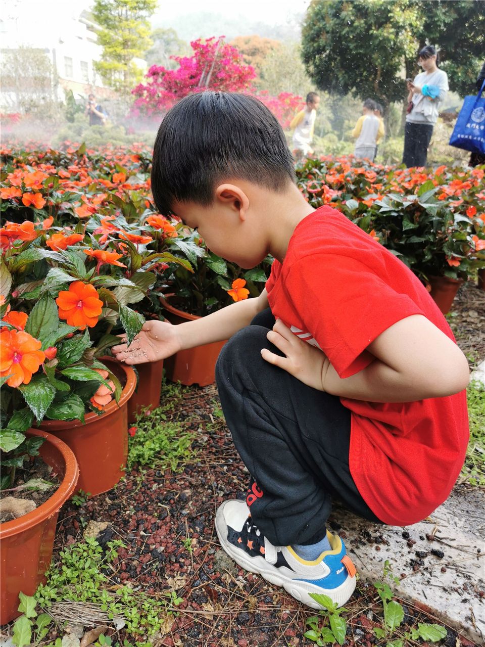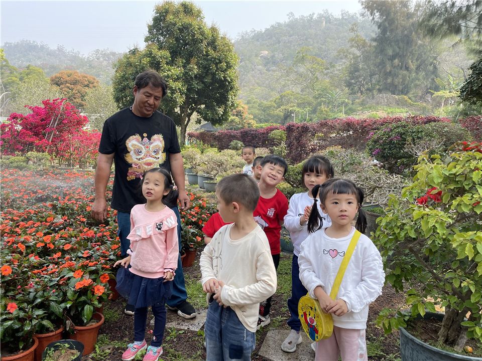 厦大花圃迎来了小朋友们轻快的身影。沿着小路,孩子们蹦蹦跳跳登上台阶,一转弯,来到厦大花圃。花圃里成排绽放着鹅黄色的绣球一般的菊花,梅红色的火焰般的三角梅,大棚里有千姿百态的树苗,似春色锦绣的画卷。