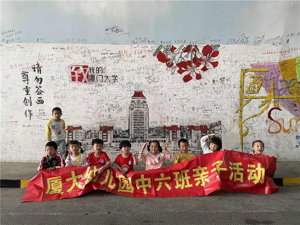 春暖花开,春意盎然。厦大百年华诞之际,校园里欣欣向荣,洋溢着喜庆的气氛。为了让小福娃进一步感受厦大文化,领略厦大魅力, 厦大幼儿园中六班亲子小分队开展了丰富多彩的亲子活动,他们和爸爸妈妈们探寻厦大百年校庆的文化元素,探访校庆期间最美厦大背后的那些人,听他们的故事,让福娃们在爱校爱园的同时,懂得感恩,认同劳有所得。