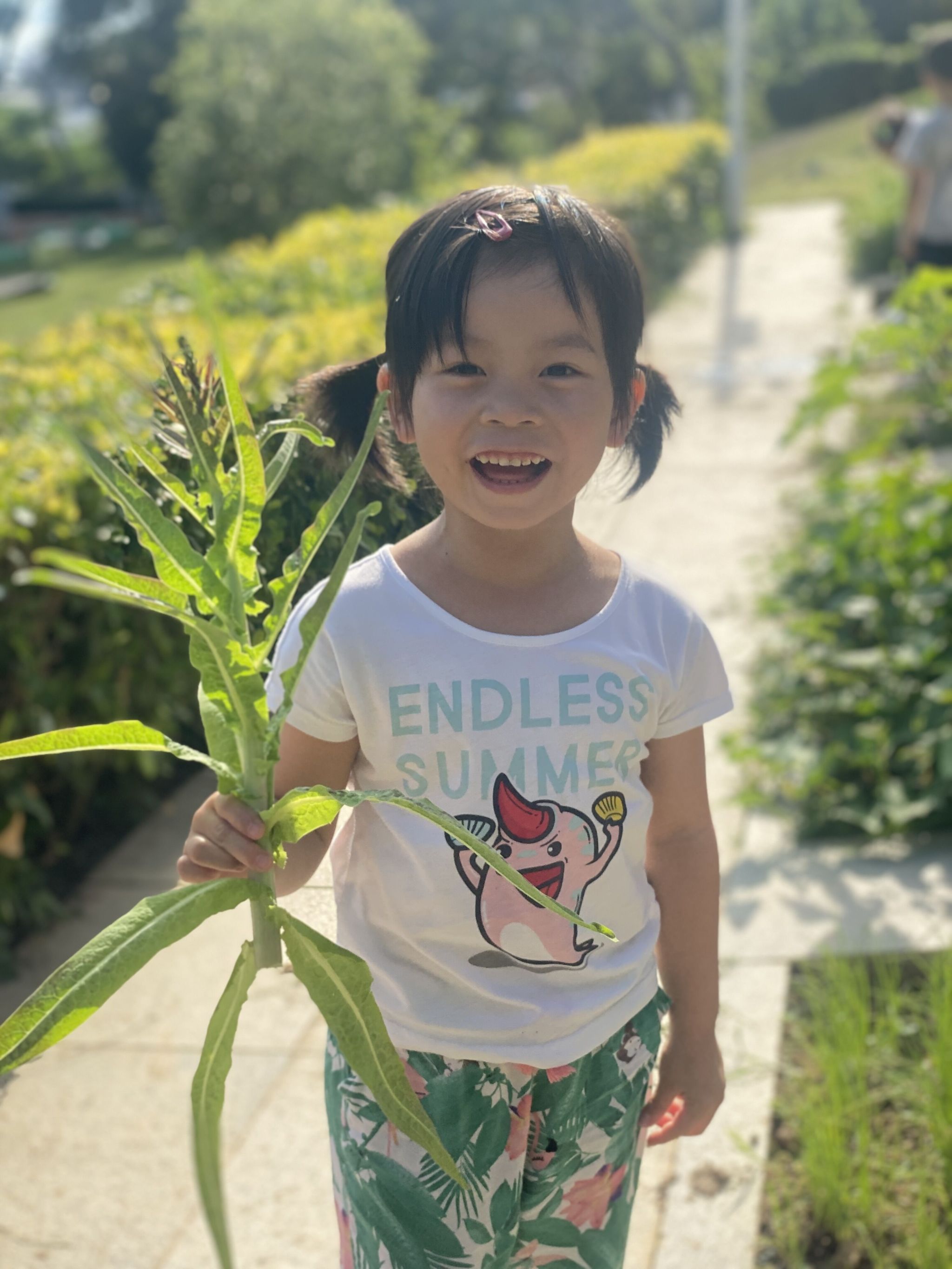孩子们种植下的幼苗,经过精心照料已经长得郁郁葱葱啦。孩子们抑制不住内心的喜悦,小心地采摘着自己的劳动成果,看着孩子们拿着自己采摘的油麦菜脸上洋溢着灿烂的笑容,笑容和好天气融合在一起,空气都是甜甜的味道。方寸苗圃承载了孩子们的希望,孩子们亲身体验生命变化的奇迹,并在亲手劳作中和种子宝宝们一同享受大自然的滋养,从中享受着自主探索带来的乐趣。