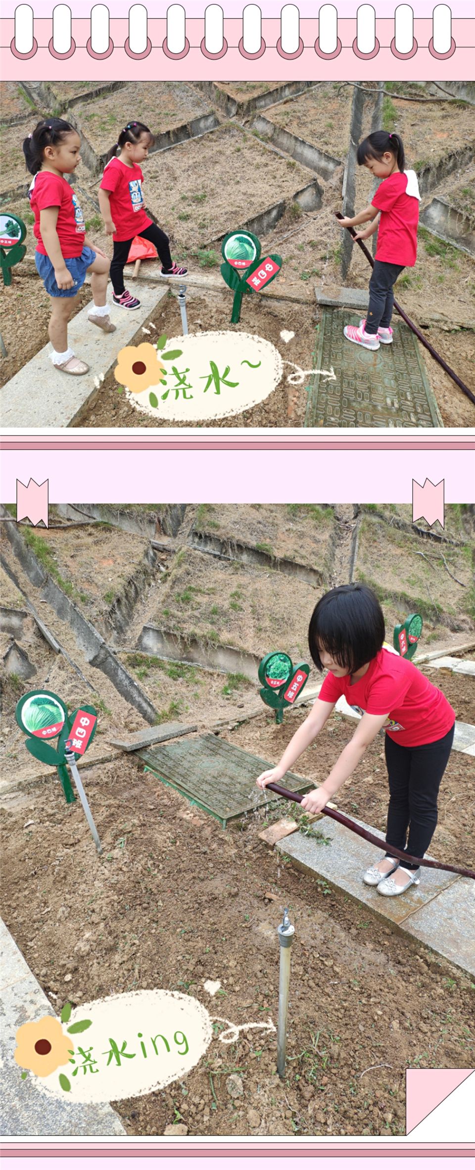 有空要时不时来看望小包菜哦。要给小包菜浇水、施肥、除草才有营养长大,小包菜才能茁壮成长呢!