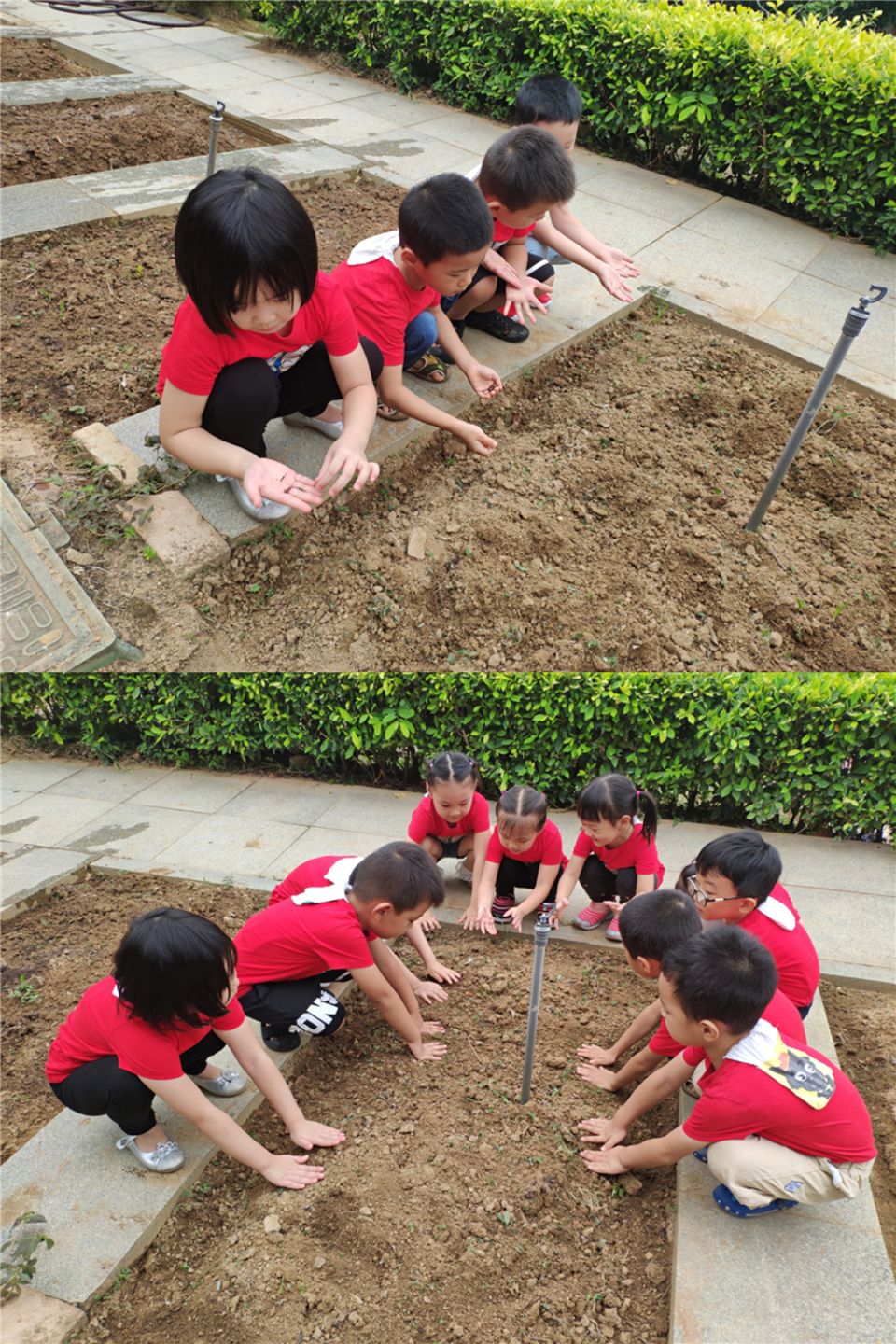 “原来,包菜是种出来的呀!”老师告诉福娃们,小山坡有属于我们中四班的菜地,福娃们可以种喜欢的包菜啦!瞧!福娃们正拿着小锄头给菜地松土、播种呢!福娃们轻轻地将包菜的种子种入土里,用手将土拨回按平。“小包菜,你要快快长大哦!”