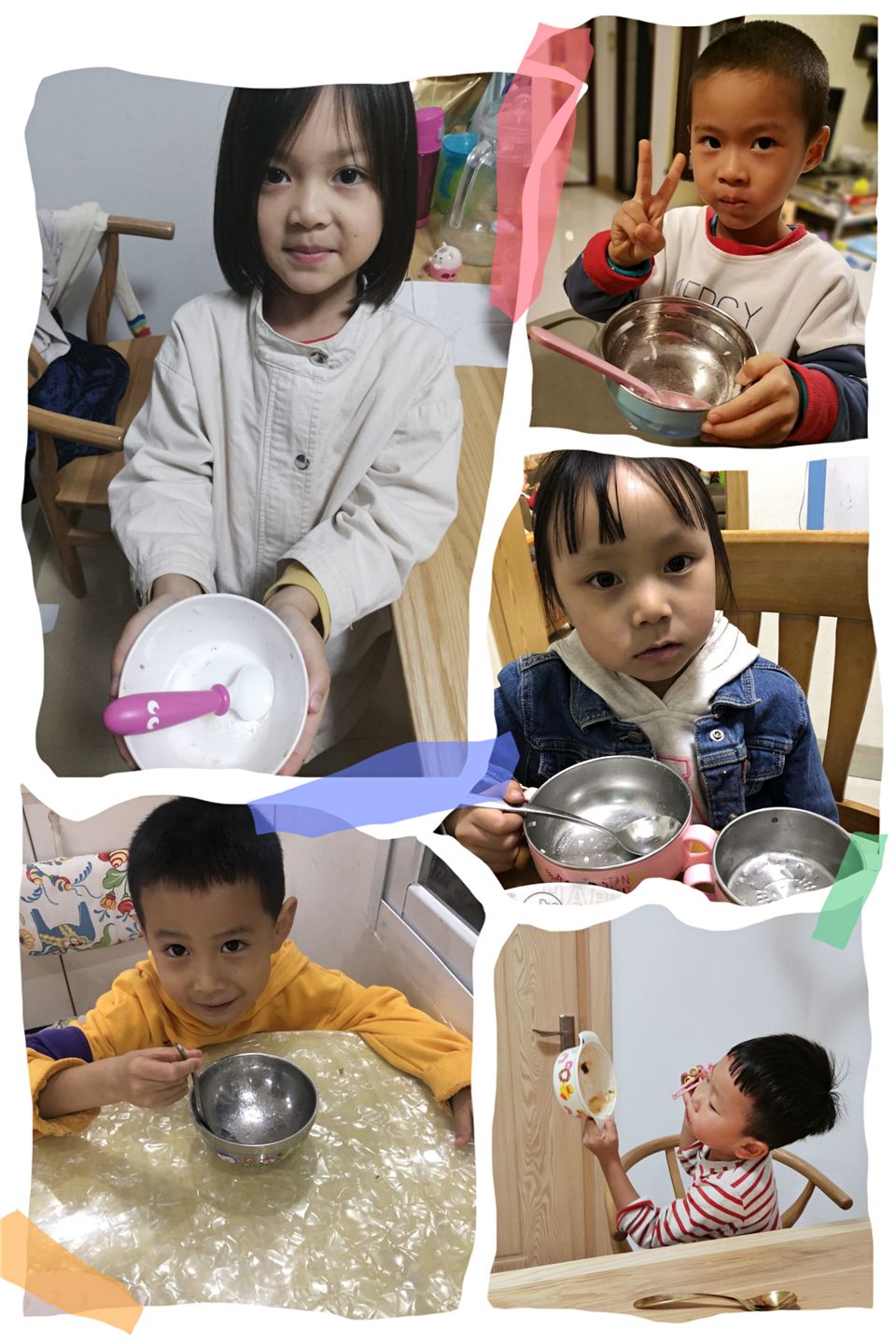 原来制作自己喜欢的食物需要这么多步骤,需要这么多人的努力呢!餐桌上的粮食来之不易,福娃们会更加珍惜的!在幼儿园,努力吃完自己的一份饭,以实际行动响应“勤俭节约”的时代风尚。