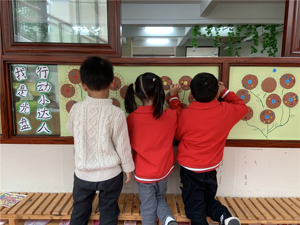 “我今天也拿到了打卡贴纸呢。”小熙高兴地指着打卡墙骄傲地说着。