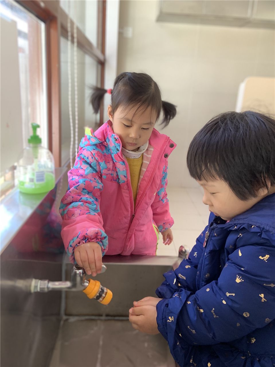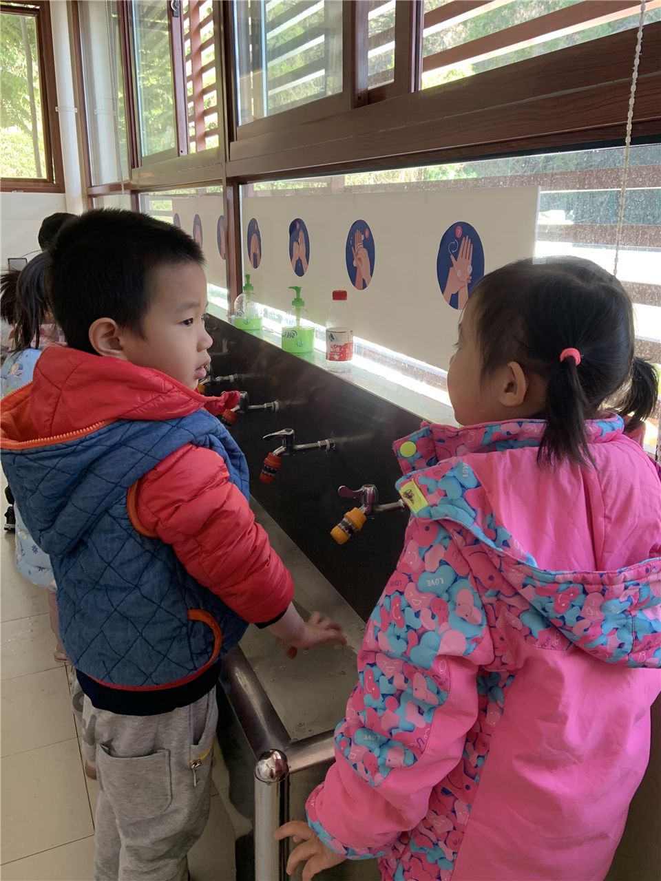 每到饭点中一班的小小值日生都会站在洗手池旁,提醒着每位小朋友洗手时水龙头水量的大小。这不,又听到了今天的小值日生圆圆轻声地提醒着旁边正在洗手的小朋友:“你的水开太大啦,关小一点儿!”