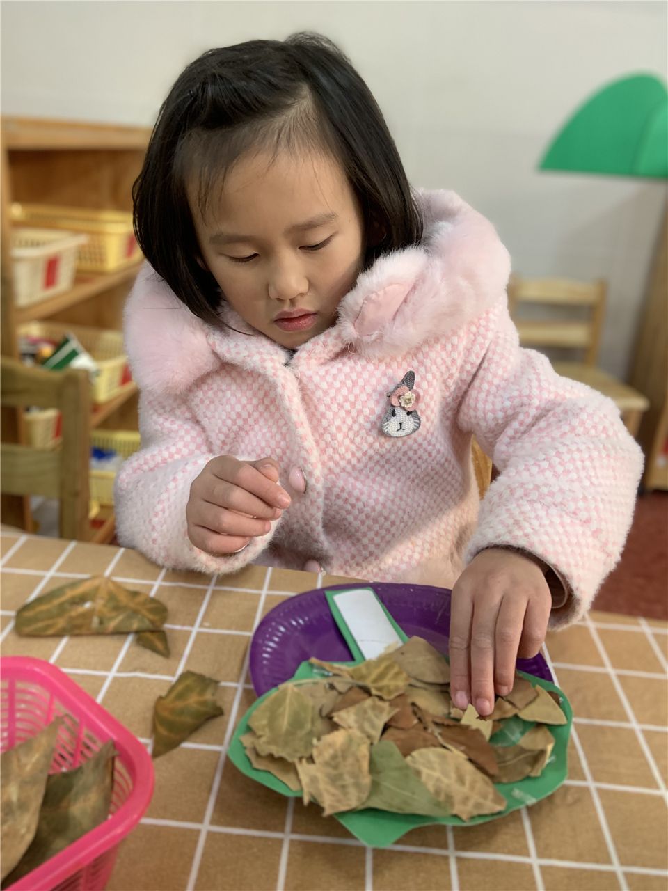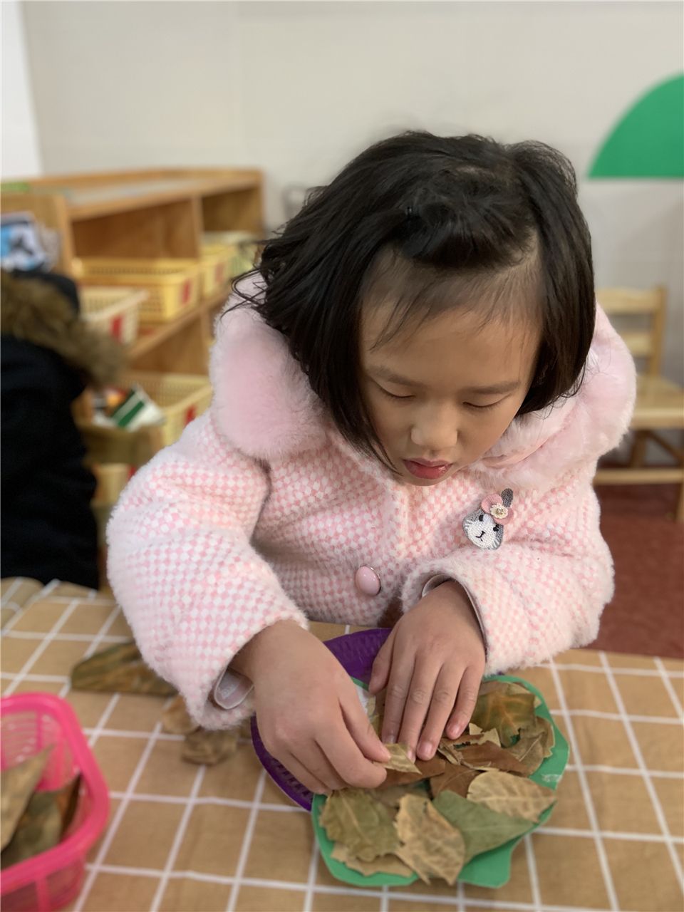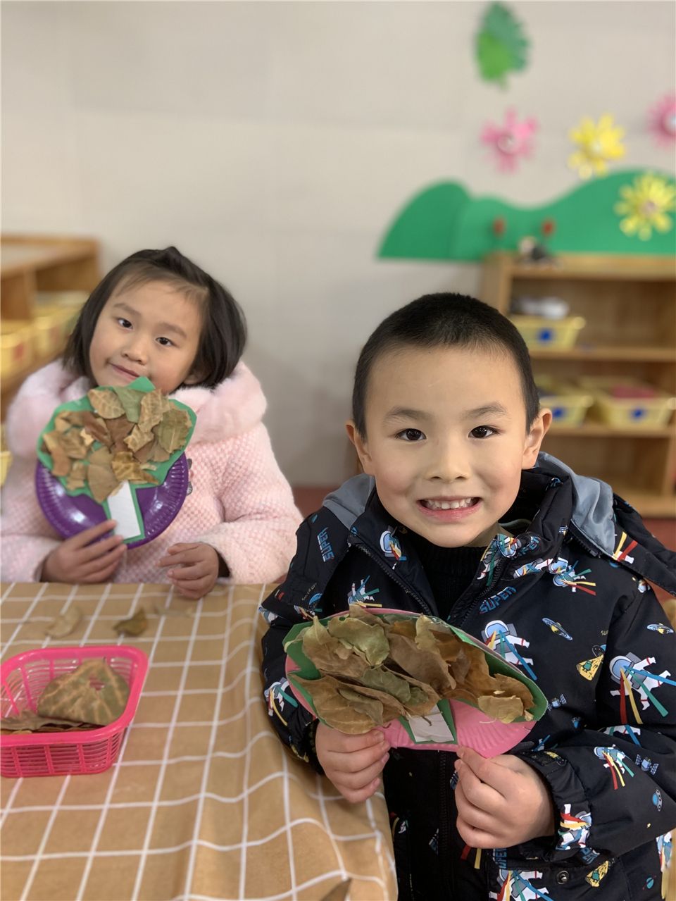 “还有我用卷芯筒作树干做了树叶小贴画。”