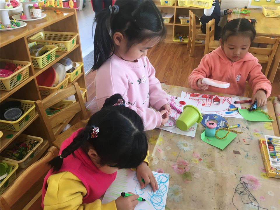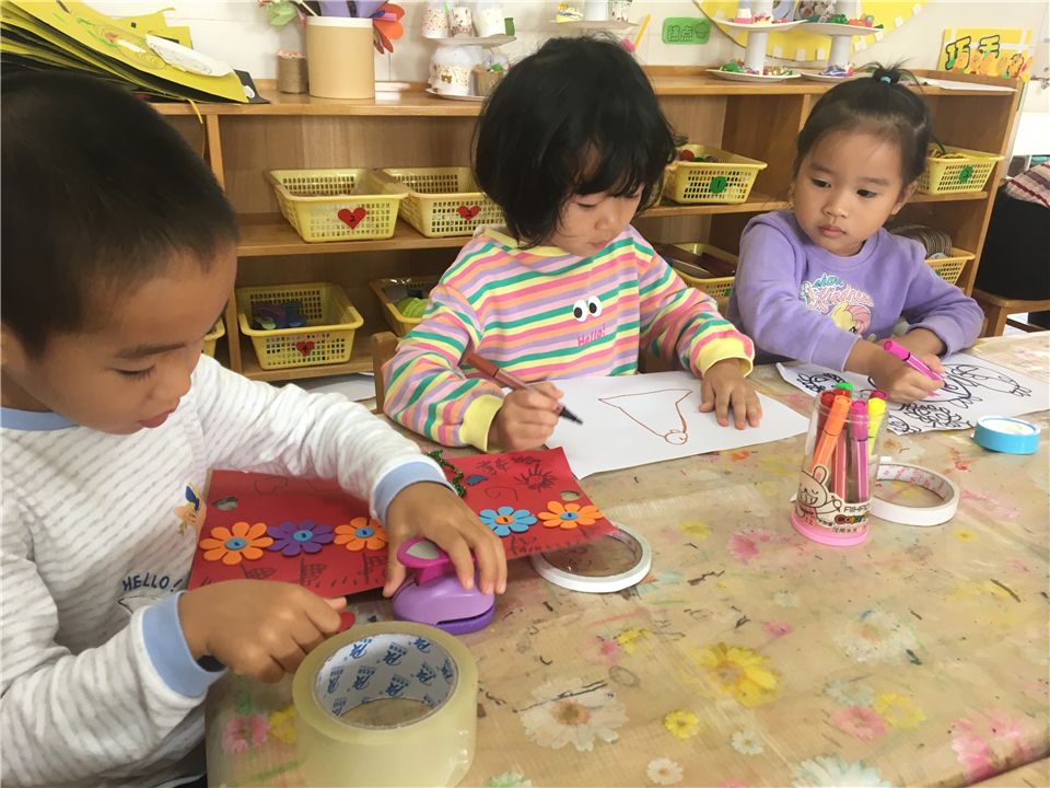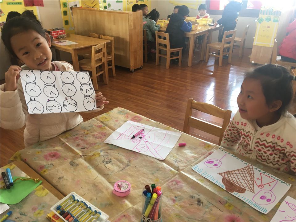 美工区充分让孩子们感受美、创造美,培养孩子们想像的空间。小艺术家们在小天地里画、剪、折,我们的作品是不是很有个性?