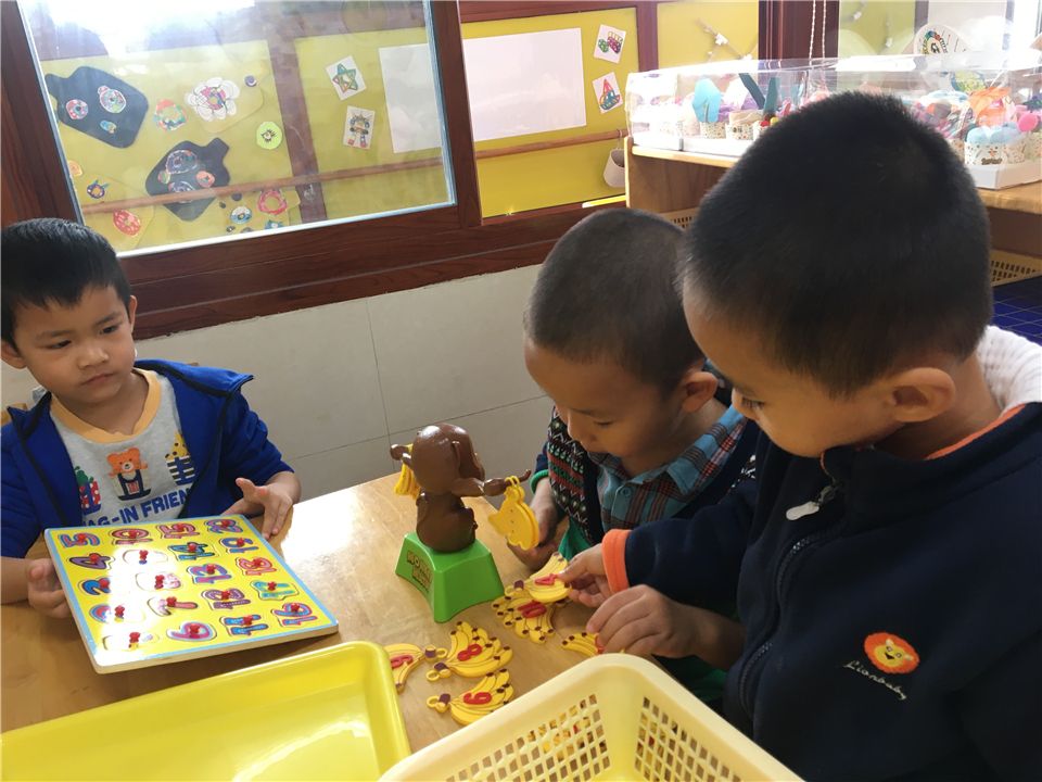 怎么样才能让小猴子的两只手到达平衡呢?数字宝宝的家在哪里呢?我们来看看数学区的小朋友在做些什么?