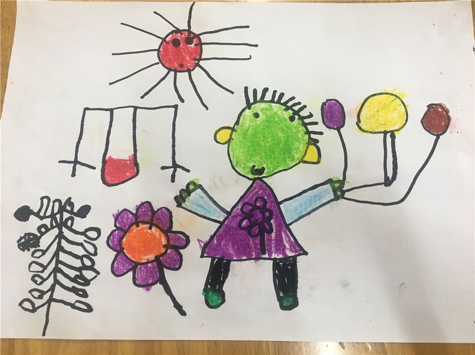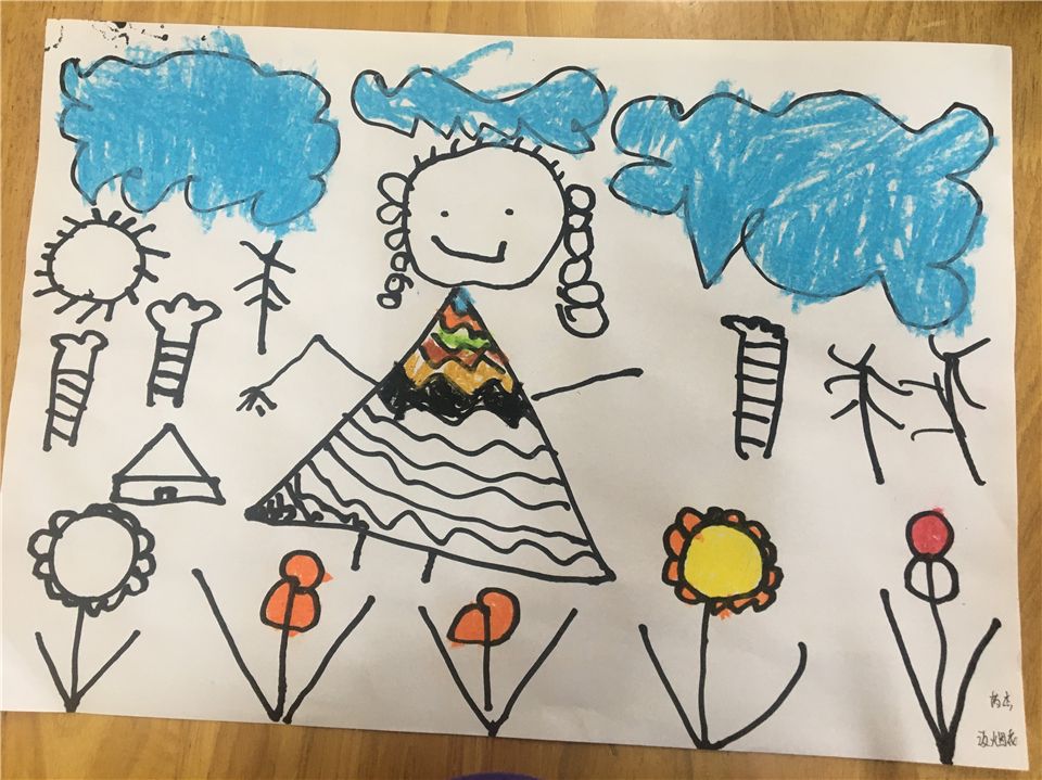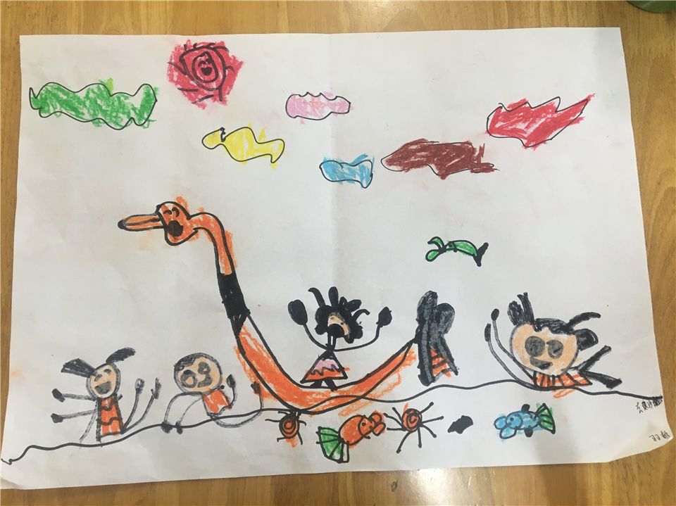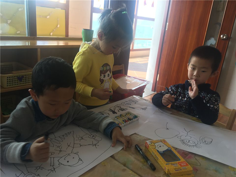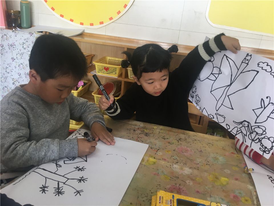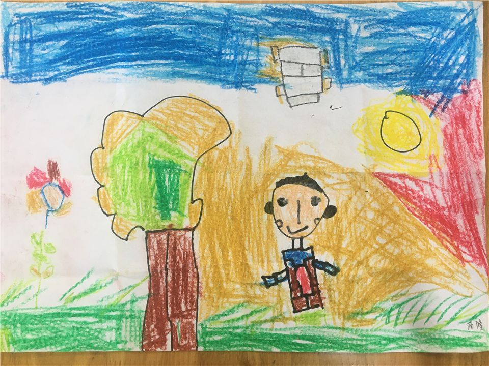 孩子们认真地一笔一画地画着。一会儿工夫,很有故事画面感的作品就新鲜出炉了。我们一起来欣赏一下吧!