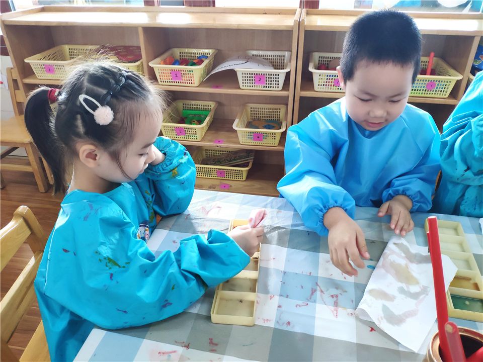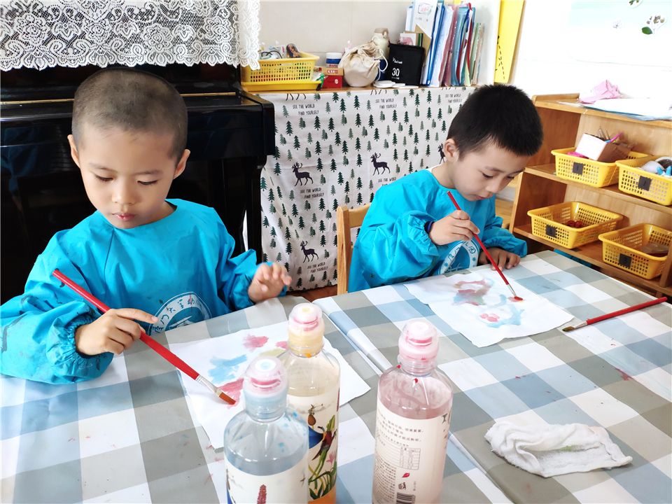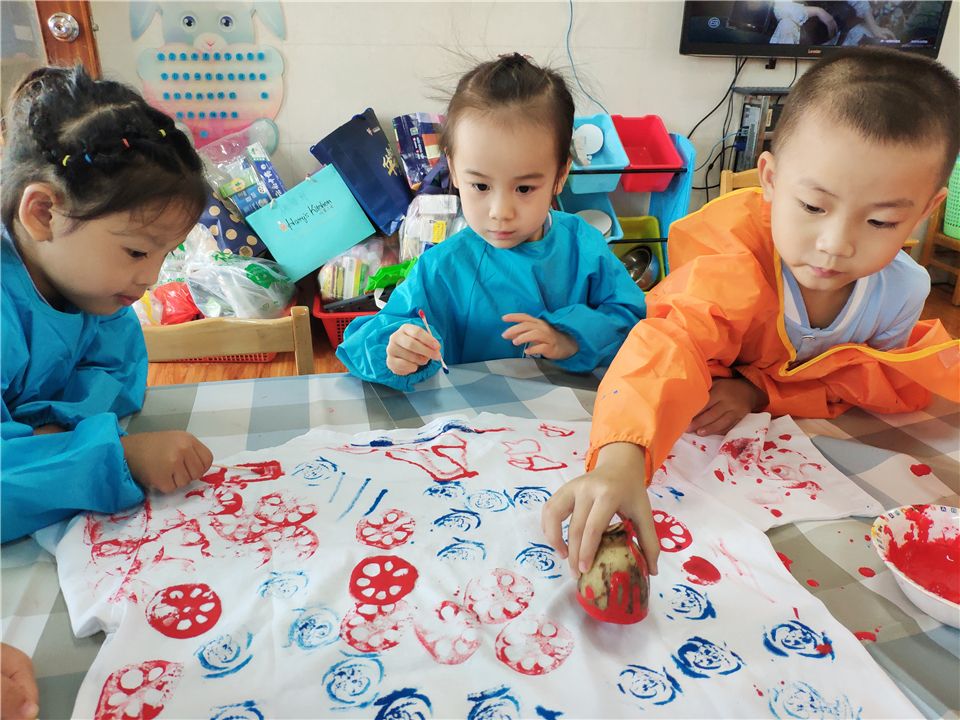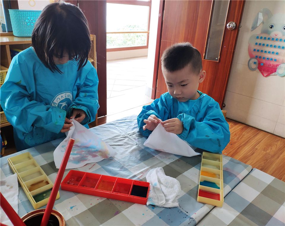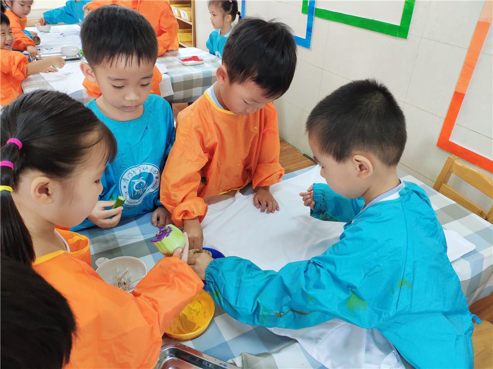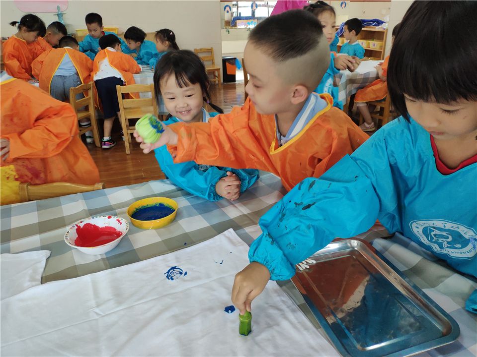 “好想当染布师傅呀!”福娃们对颜色的变化和印染兴趣正浓,于是刘老师开展了艺术活动《小小染布师傅》,请福娃们到“中四染布坊”一起染布咯!