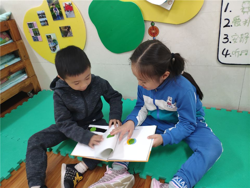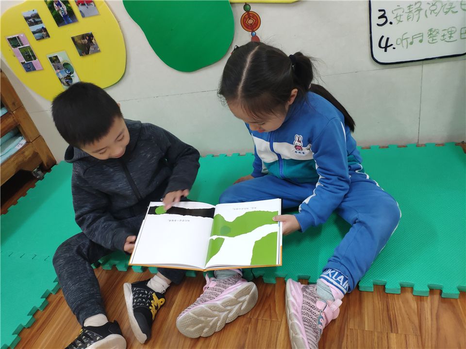 一天,朵朵和旸旸在阅读区中发现了本周的推荐好书——《小蓝与小黄》。他们打开绘本,津津有味地读着,很快,他们的讨论声传了出来:“小蓝和小黄抱在一起变成小绿了。”“我还记得,以前梅子老师有带我们变出小绿!”“那其他颜色是怎么变出来的呢?”