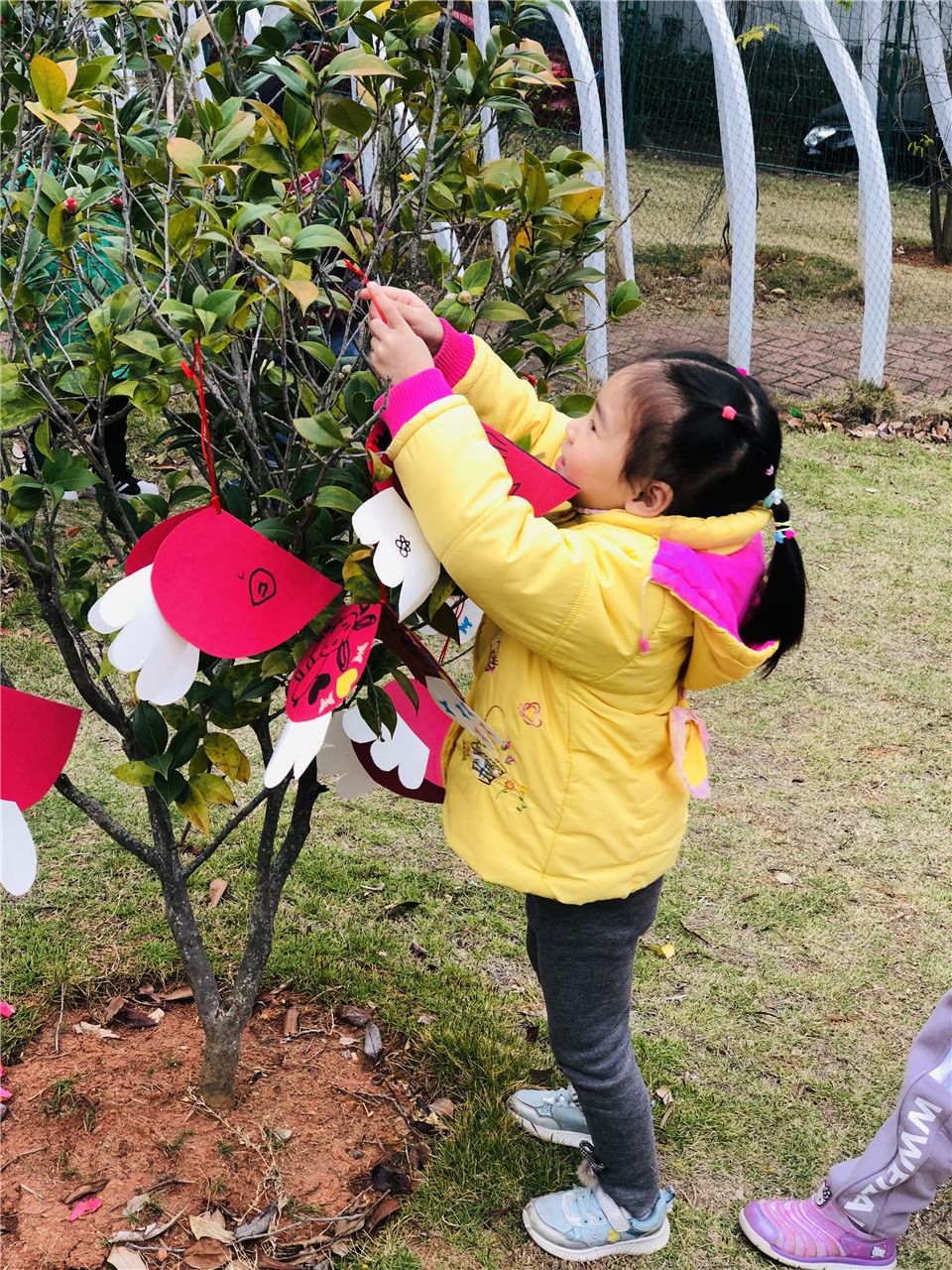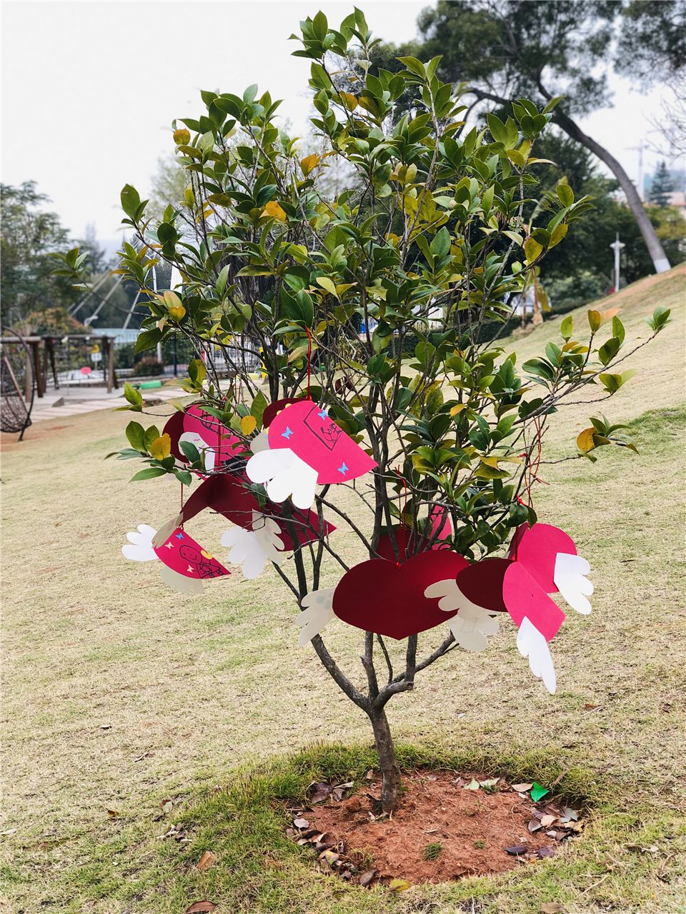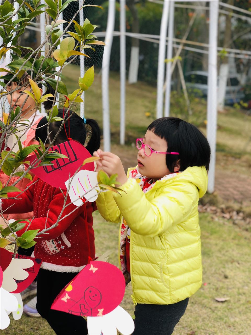 小树上挂满了萌娃们的心愿卡,寓意着萌娃们新年美好的愿望。