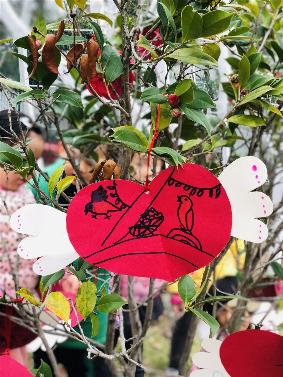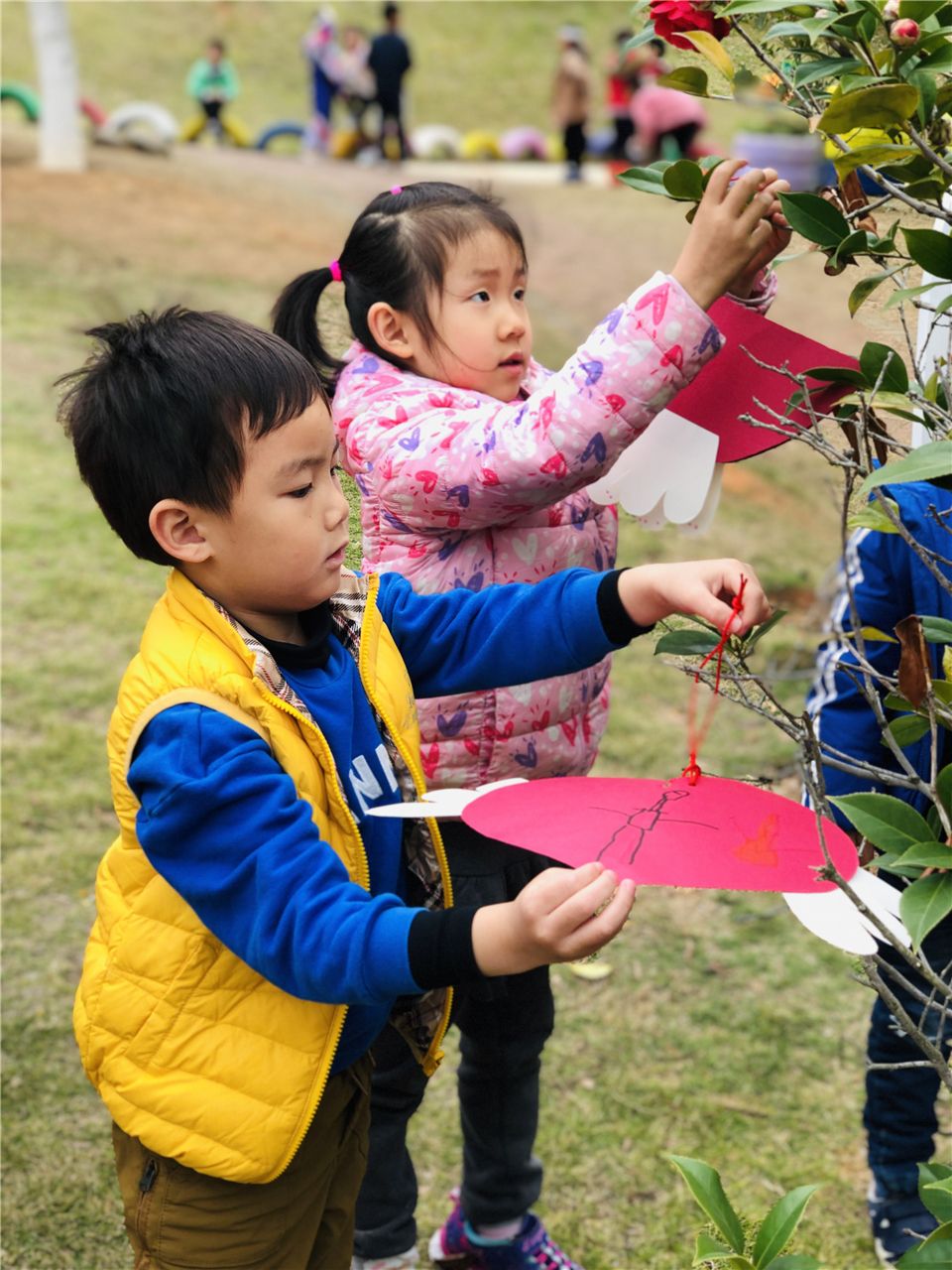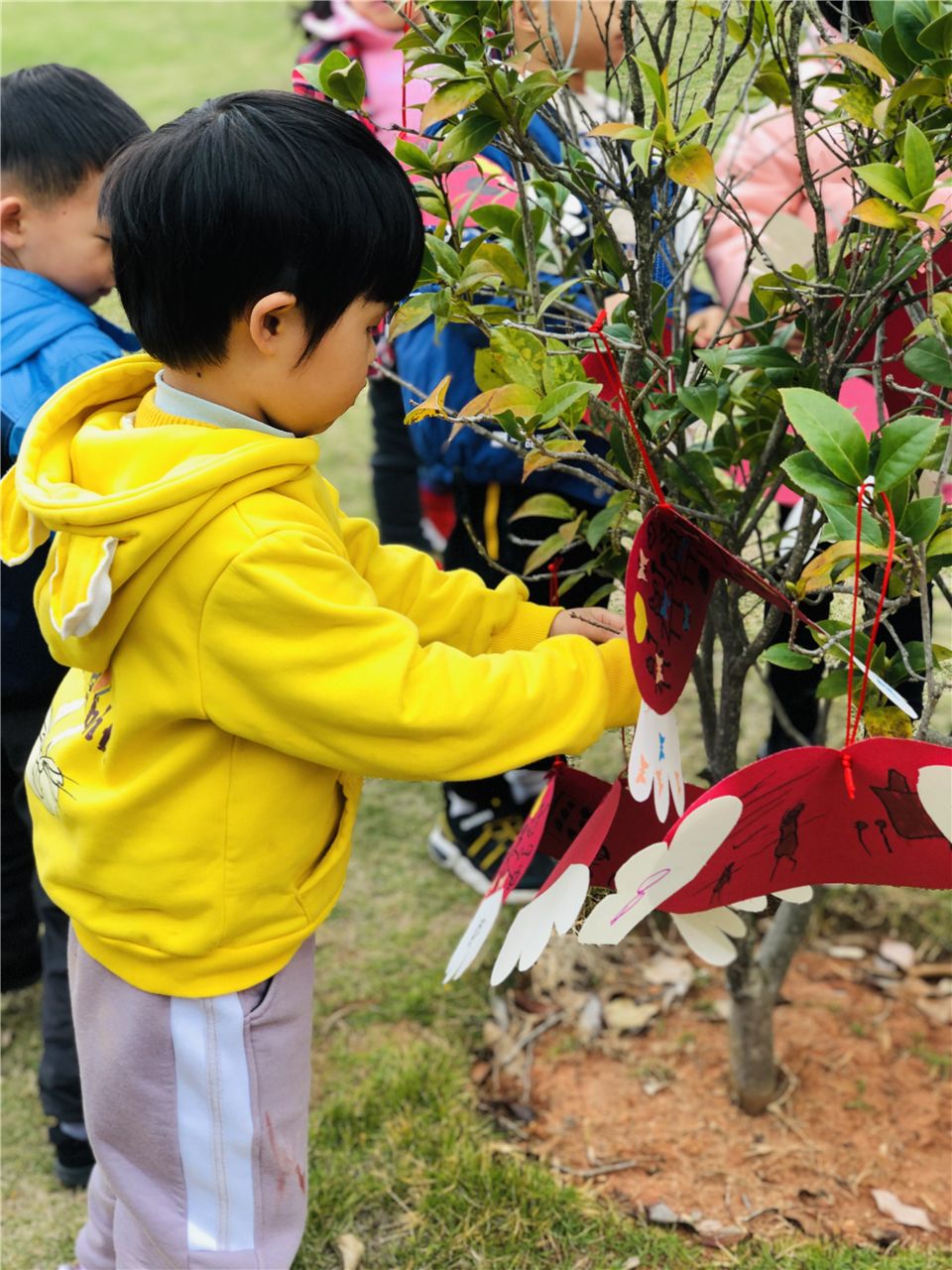 小树上挂满了萌娃们的心愿卡,寓意着萌娃们新年美好的愿望。