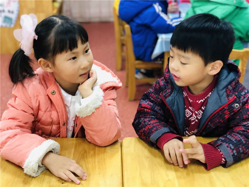 萌娃们叽叽喳喳,跟小伙伴们分享自己的新年愿望。