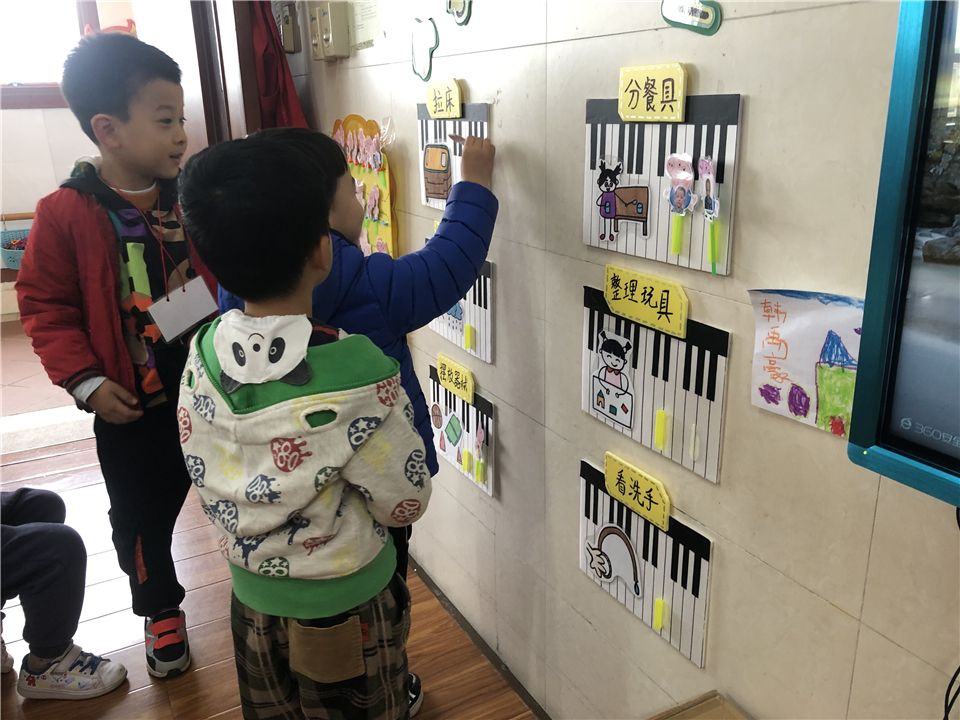 一学期以来,幼儿们渐渐明白小小值日生在一天里应该做些什么,都能积极地参与到“我是小小值日生”的活动中来。家长们也都说:“孩子很喜欢担任值日生,轮到值日的日子都会很激动,很早就要上幼儿园。”幼儿在当了“值日生”后不仅体验了劳动的乐趣,也感受到自己的劳动成果,在分工合作中,不断体验自我价值,更培养了责任感。