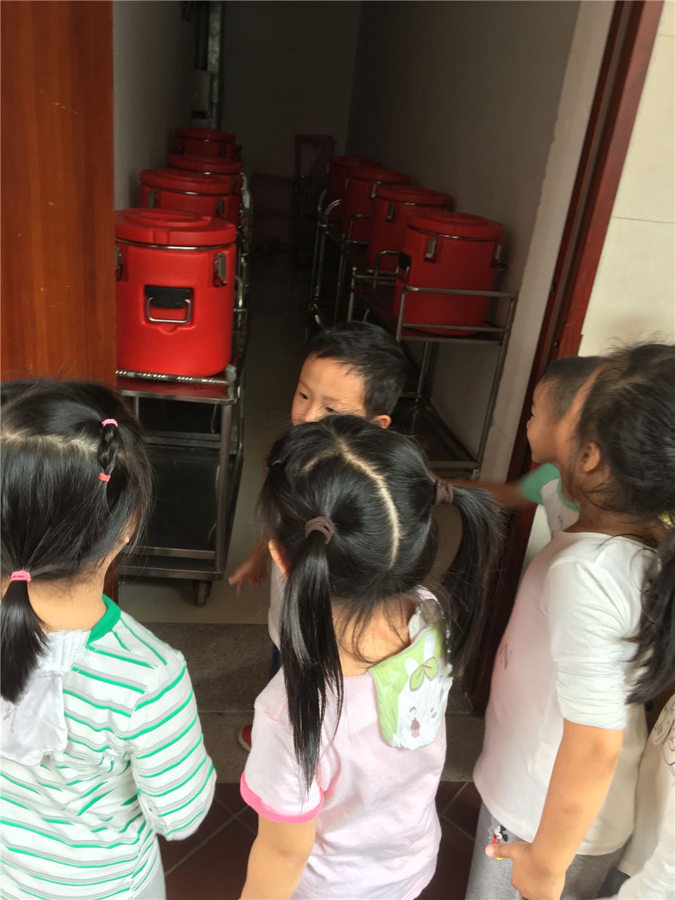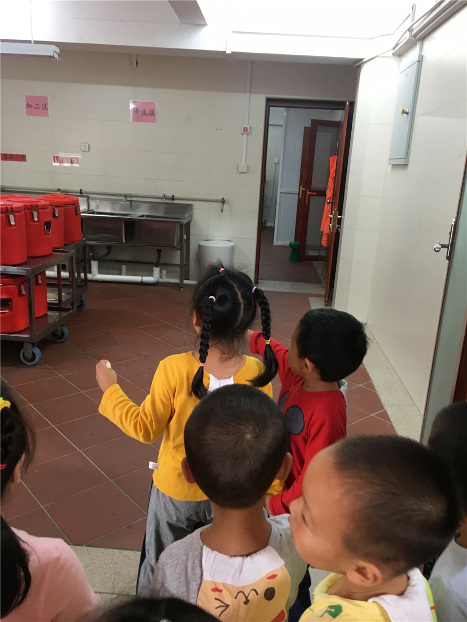 在此次活动中,孩子们不但了解到了幼儿园厨房的内部环境,而且也体会到厨师叔叔阿姨们工作是辛苦的,并且表示要自己的实际行动对他们的辛苦付出表示感谢——每天把幼儿园的饭菜都得吃光光的,一粒粮食都不浪费。