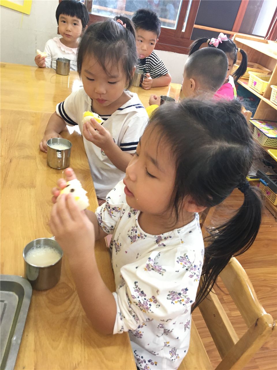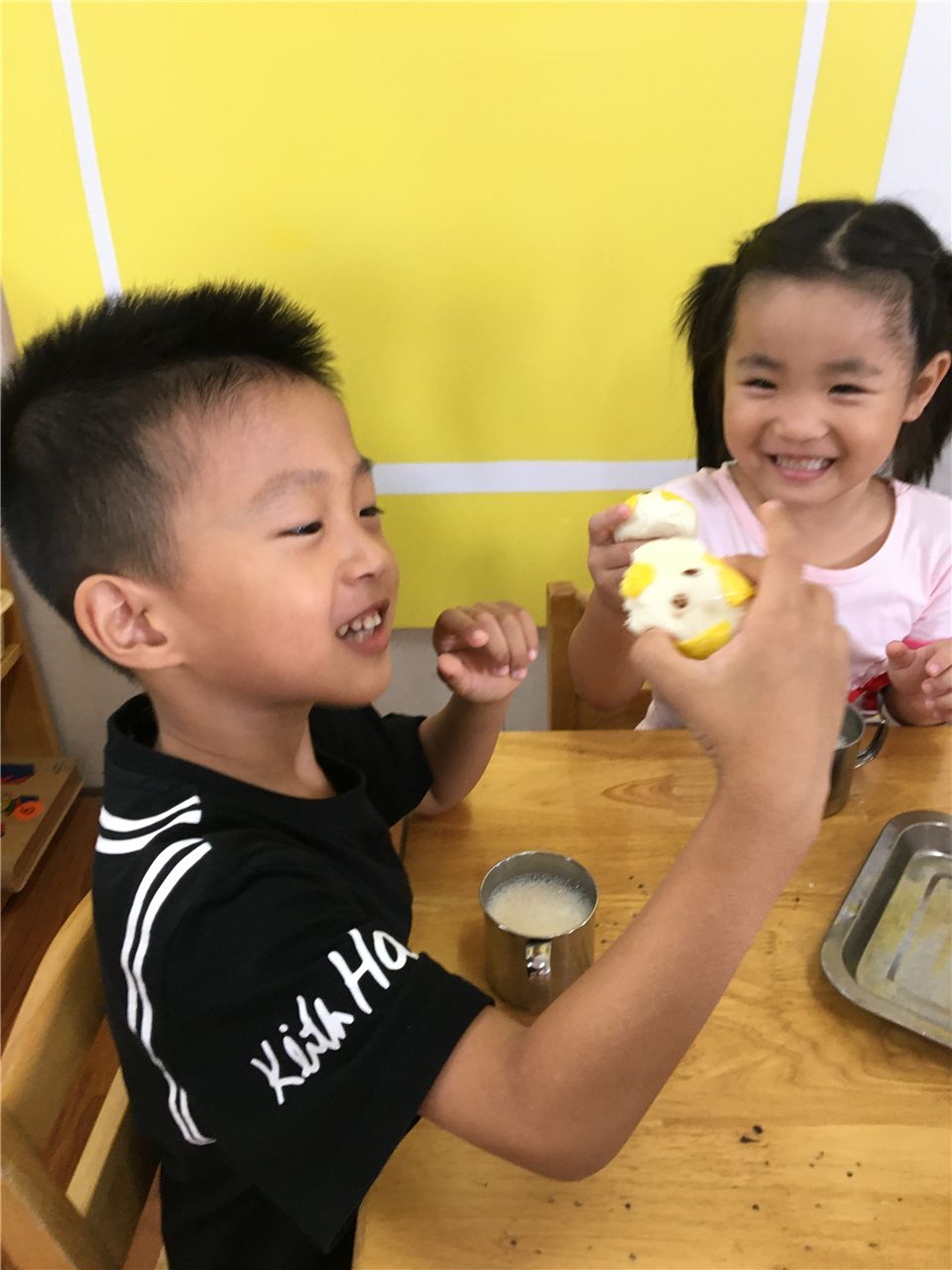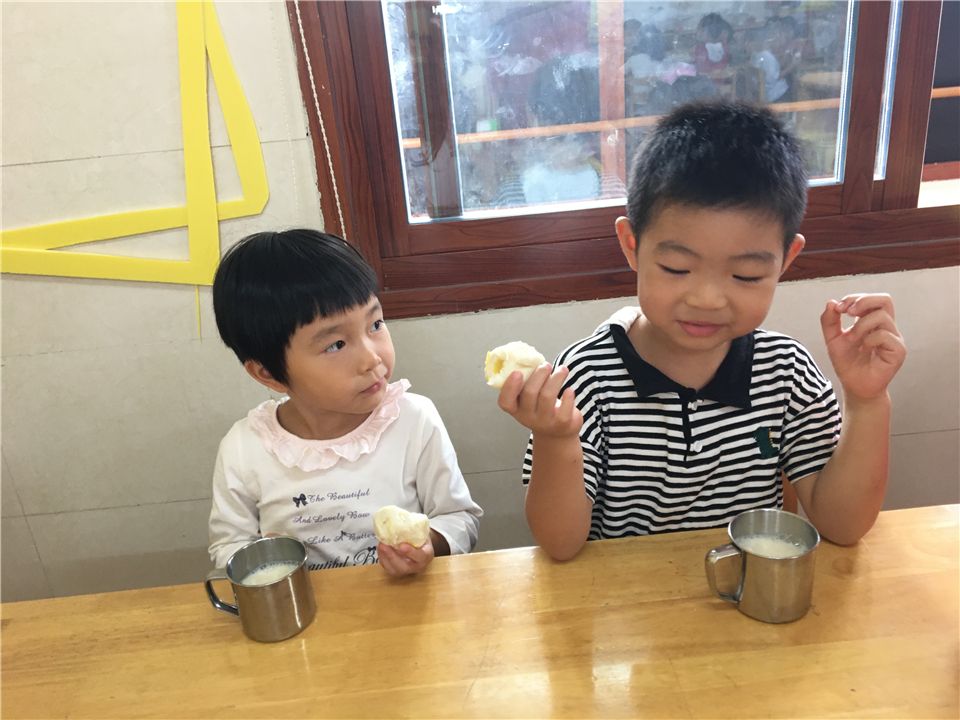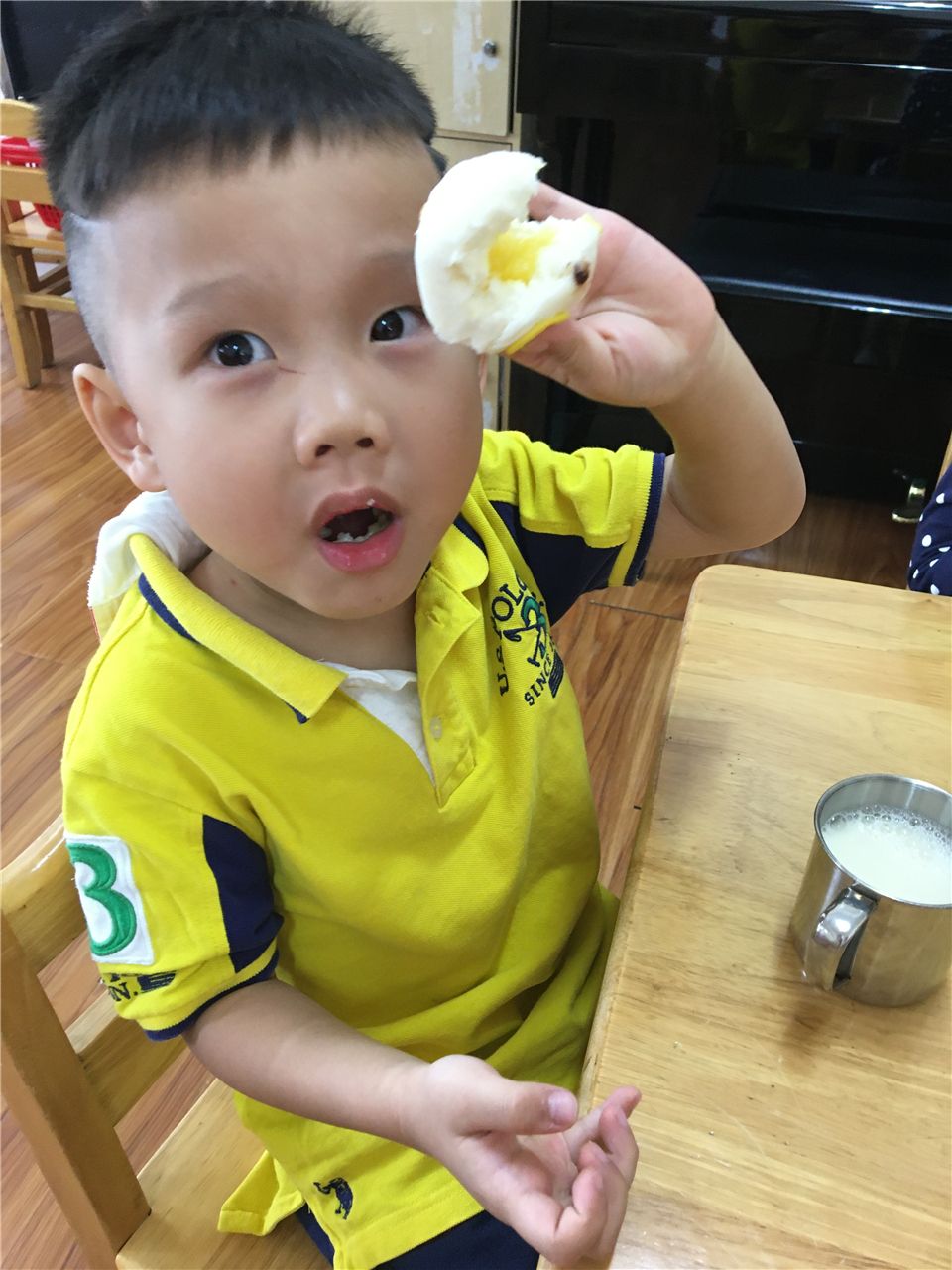 秋光绚丽,金风送爽的清晨,中五班的孩子们有序地入座开启了早点模式了!今日早点是豆浆配小猪包,孩子们边吃着边就小猪包的话题开始了七嘴八舌地讨论。