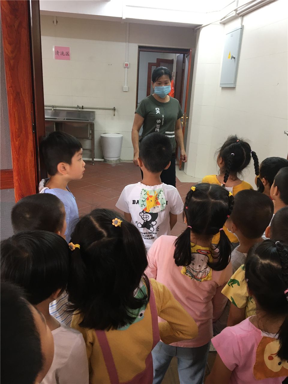 于是,老师和孩子们继续去寻找厨房了。当走到了的洗消间门口时,孩子们很是兴奋,像发现了新大路似的。