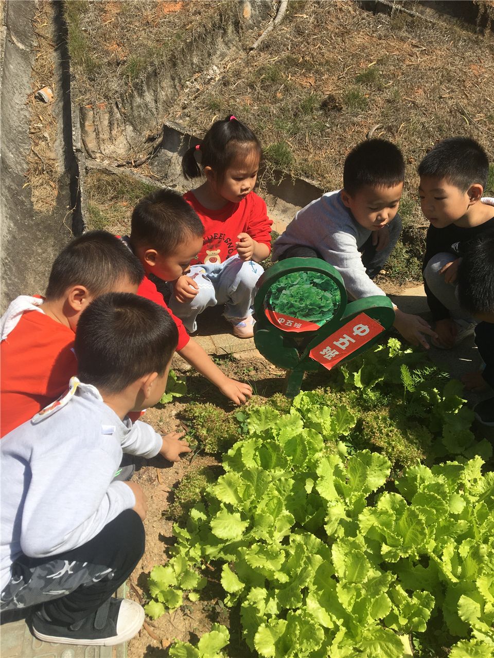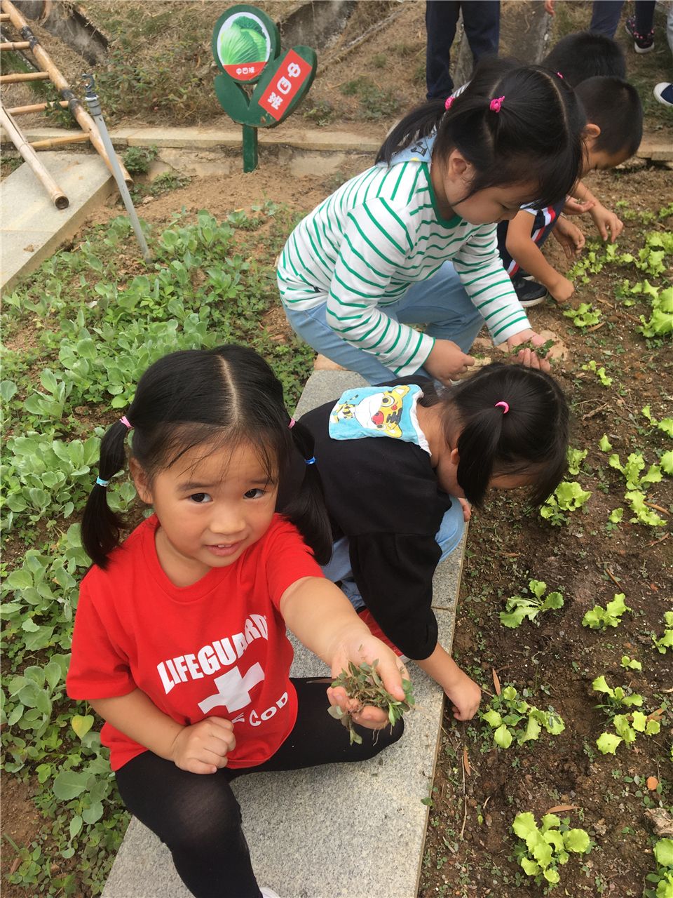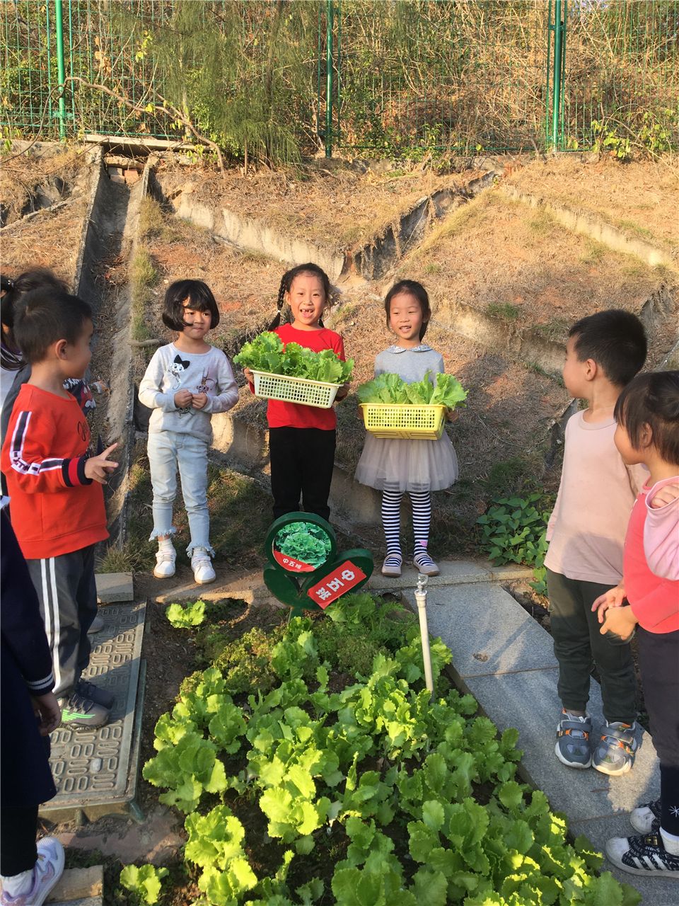 为了让生菜能更好的生长,孩子们会主动定期来给生菜浇水、施肥、拔草,并定期观察着生菜的变化,以确保它健康、自然生长。看,在孩子们的管理下,生菜越长越好。