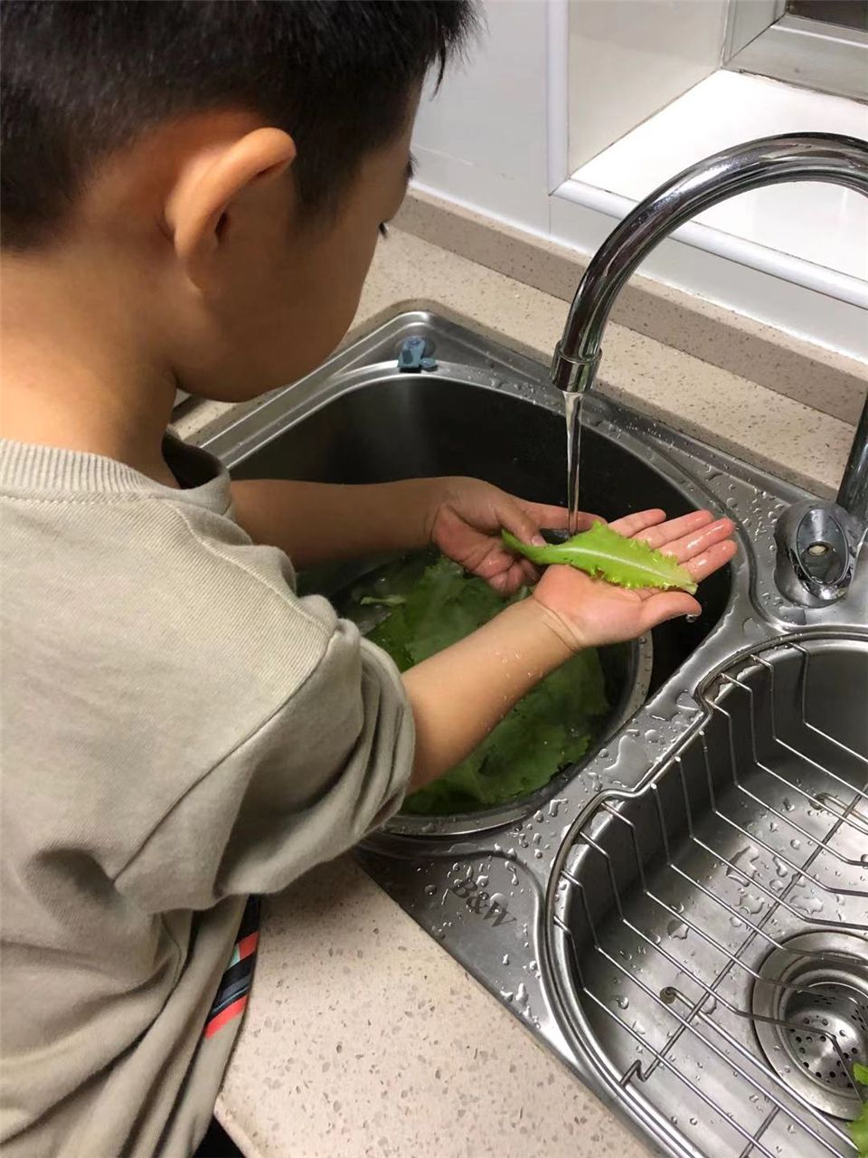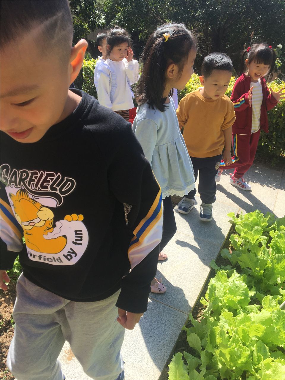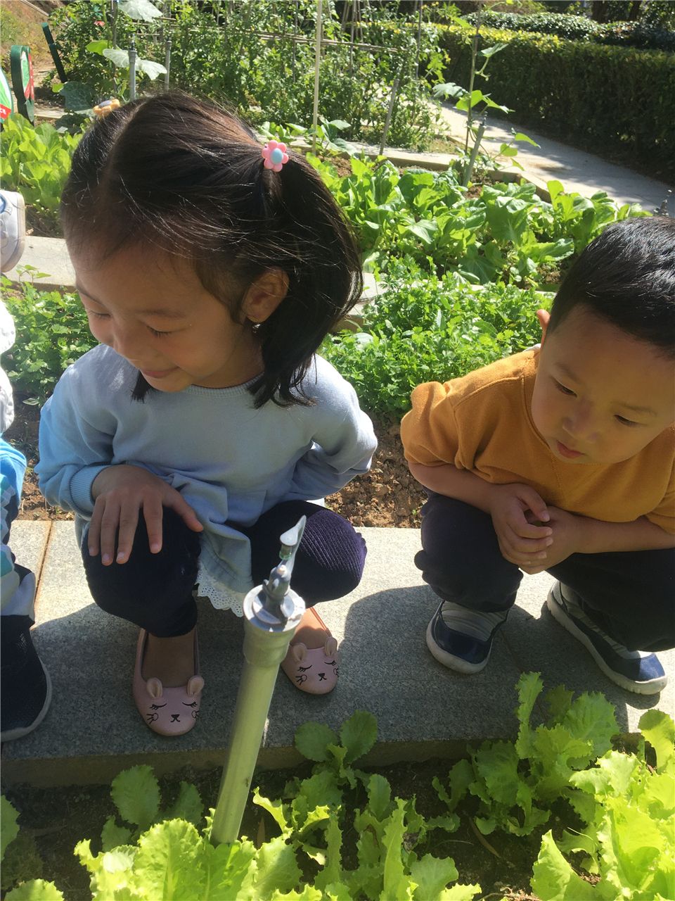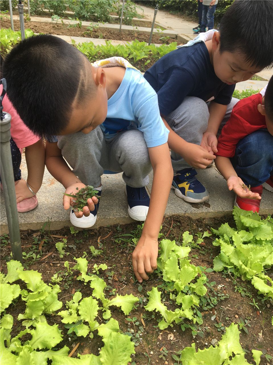 为了让生菜能更好的生长,孩子们会主动定期来给生菜浇水、施肥、拔草,并定期观察着生菜的变化,以确保它健康、自然生长。看,在孩子们的管理下,生菜越长越好。