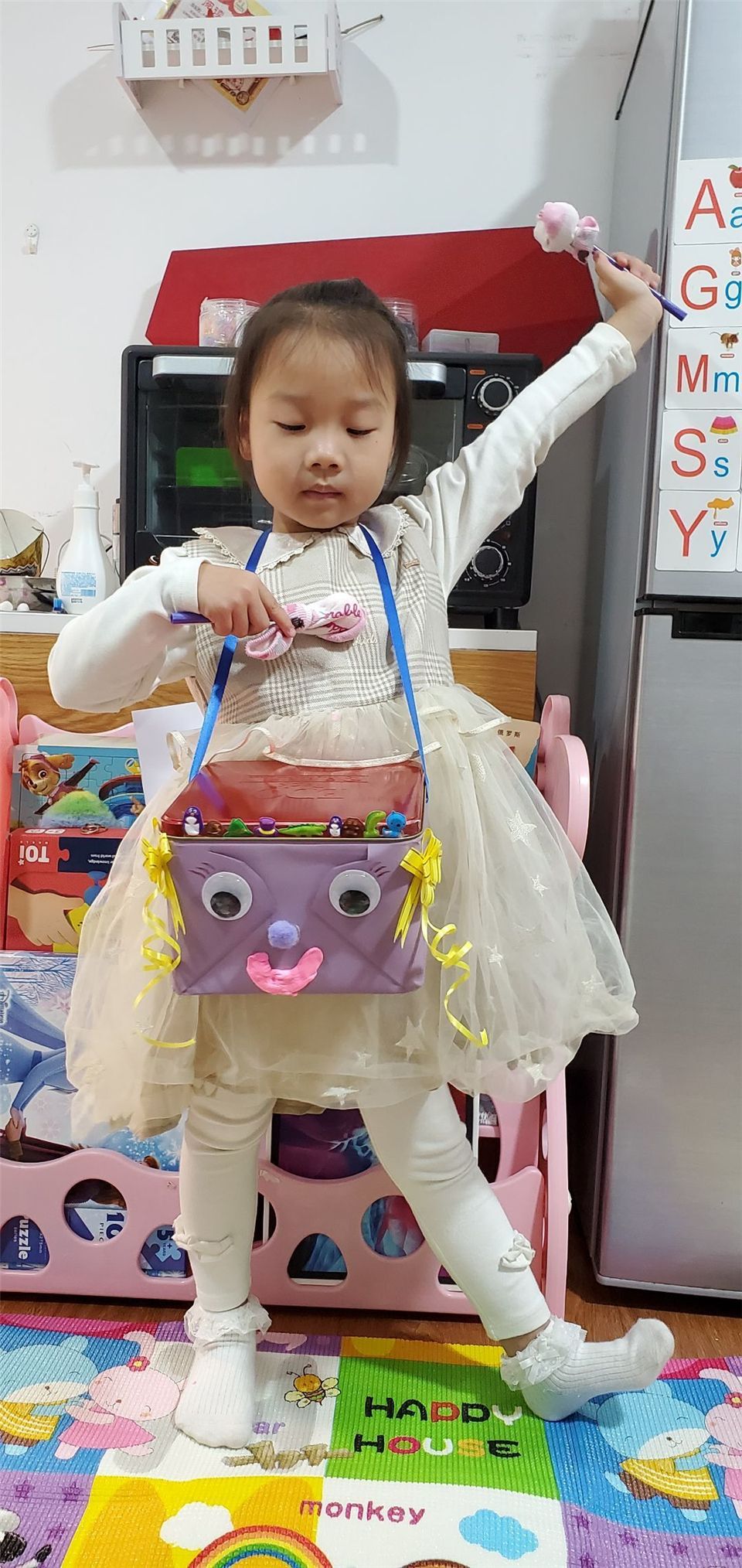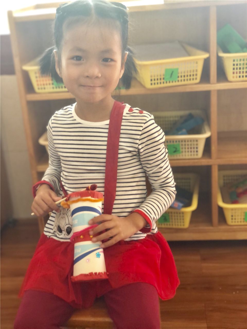 五颜六色的彩带装饰,让我的沙锤更特别。