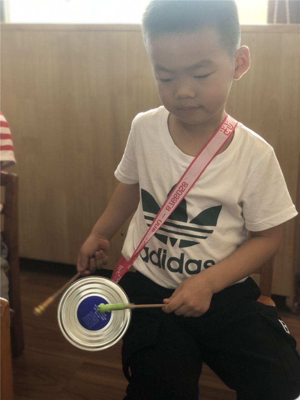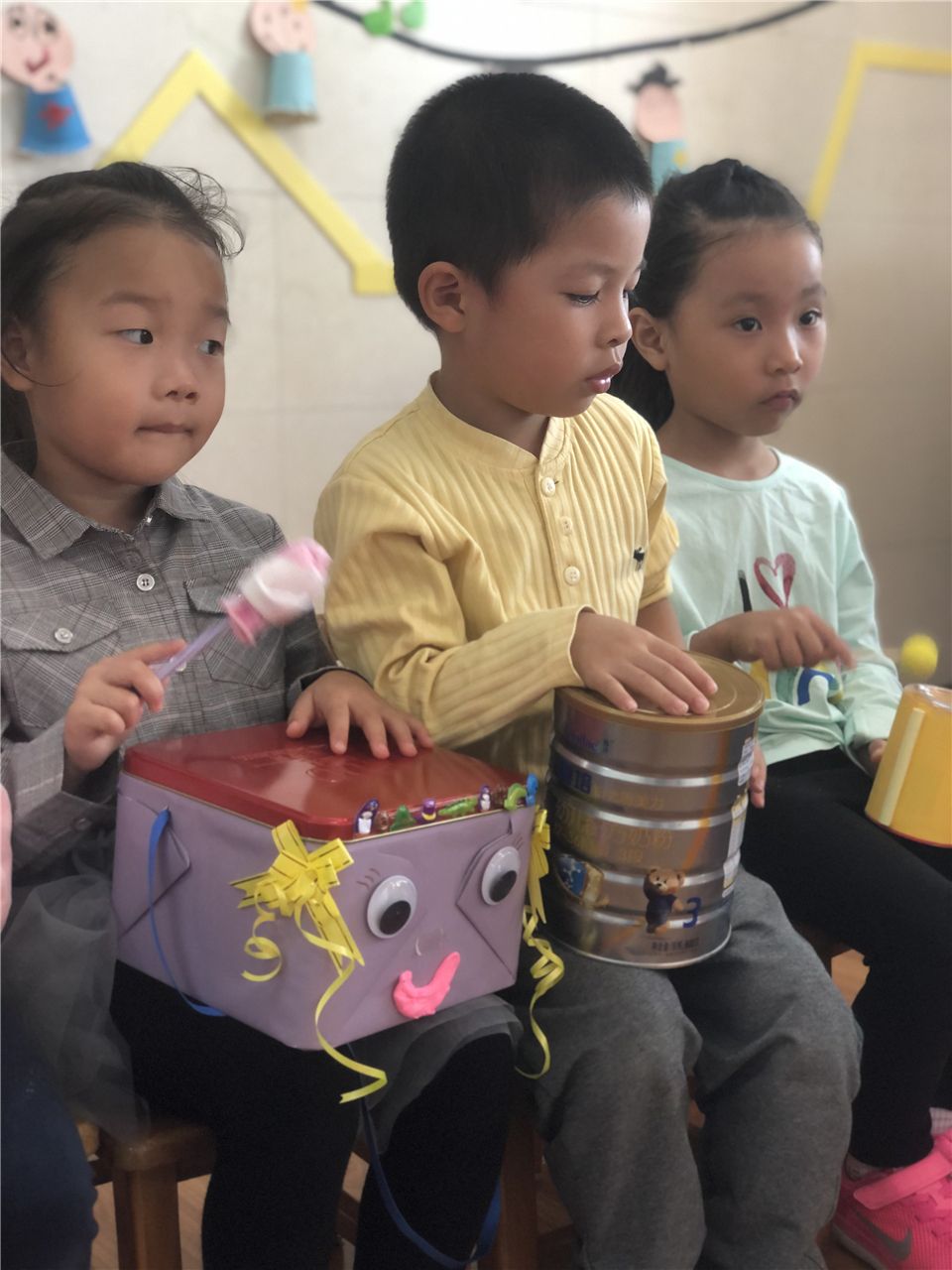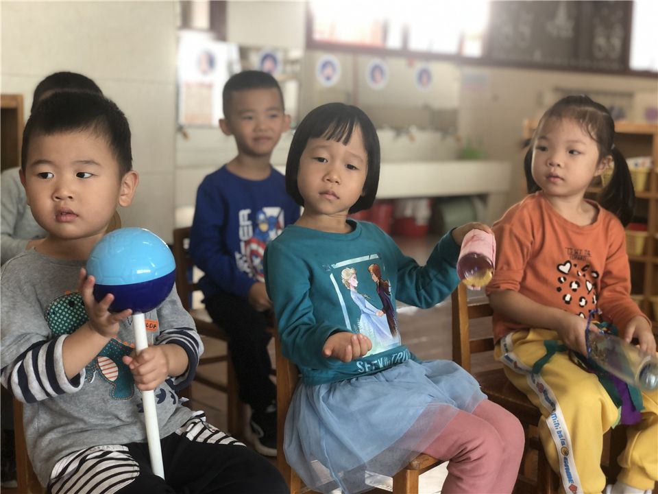 音乐活动《节奏乐——瑶族舞曲》,我们也利用自制小乐器来伴奏。认真、自信,写在每一张稚嫩的小脸上。