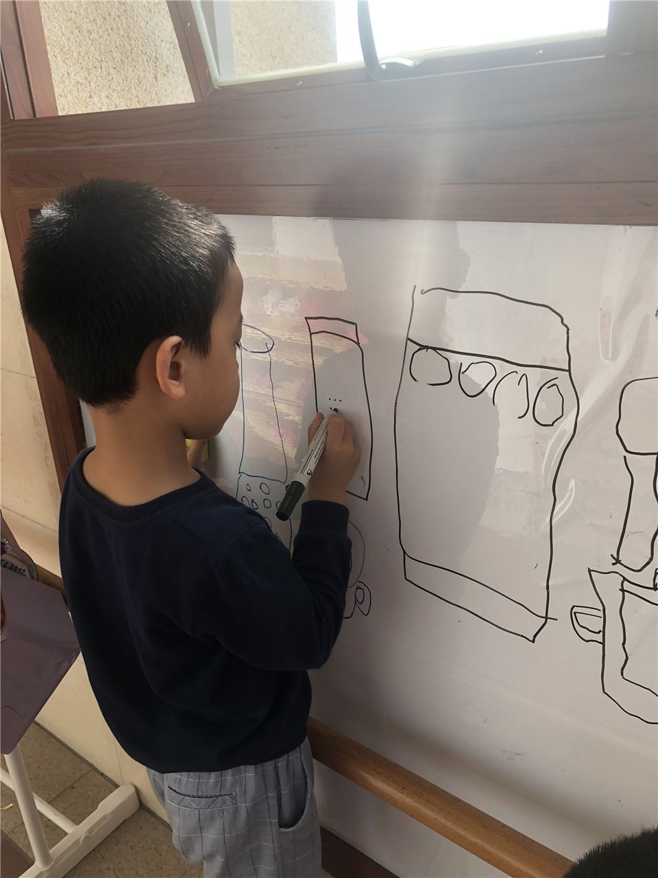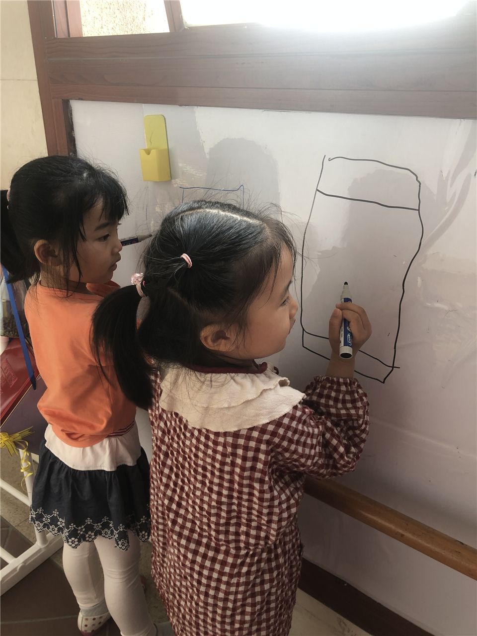 自从中七班“爸爸讲堂”开播以来,幼儿们在课余时间总会边玩玩具边哼着小曲儿,很是惬意。美妙的歌声怎少得了乐器的伴奏?这一天,小宇边唱歌边有节奏地敲着一块积木,哎,这不也是一个很好的伴奏方式吗?我问小朋友:“你们觉得生活中除了积木,还有什么材料也可以用来制作小乐器?”经过讨论,幼儿们在白板上做了记录:矿泉水瓶里面放进小豆子可以做沙锤;正方形的月饼盒可以当鼓;长方形的是奶粉罐,也可以当鼓;大大的锅盖可以当锣;杯子也可以…