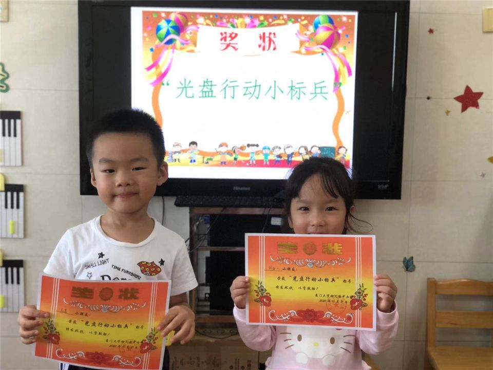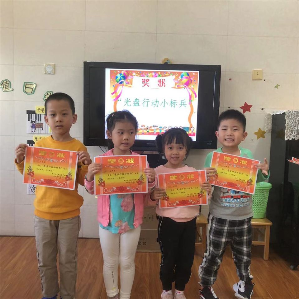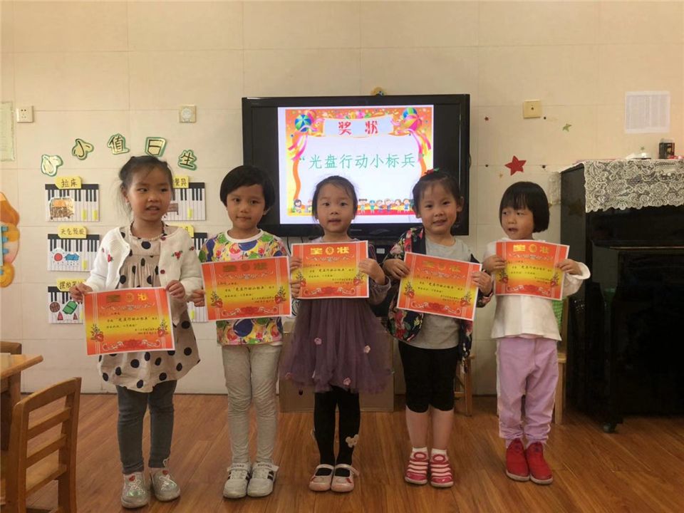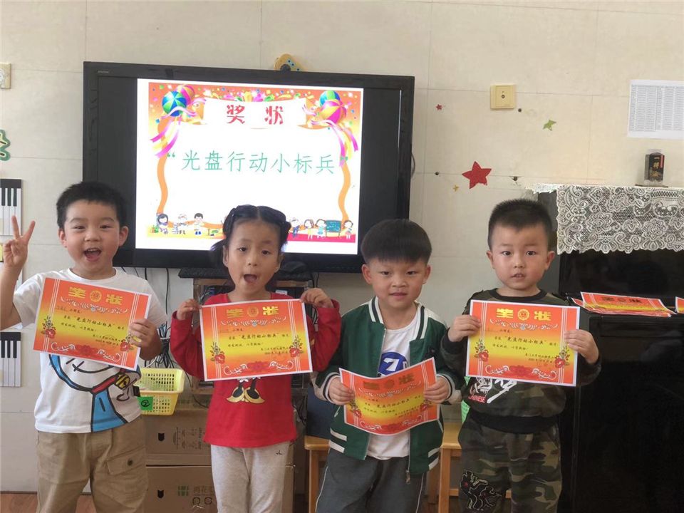 在幼儿园,我们是“文明进餐小能手”,我们是“光盘行动小标兵”。