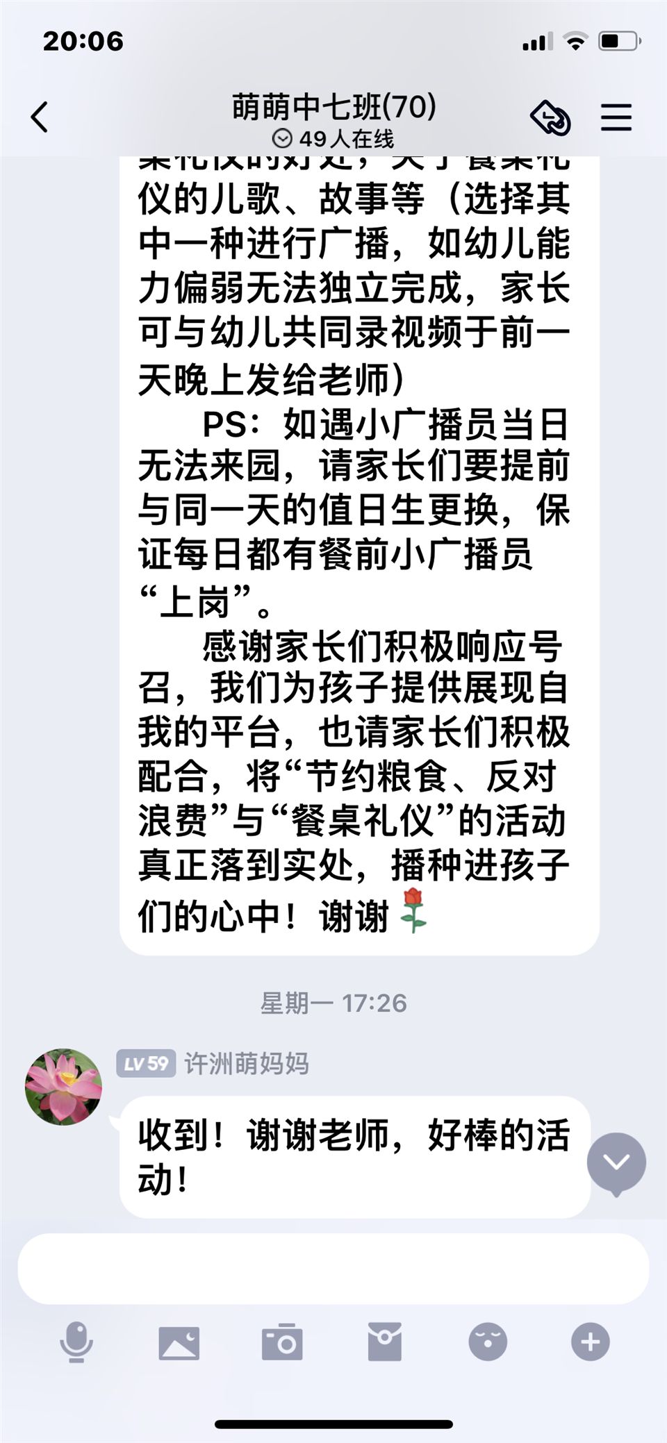 随着丰富多彩的系列“餐桌小文明大,盘中餐皆辛苦”主题活动的开展,我们中七班小朋友都将成为爱惜粮食的文明小天使。让“节约光荣,浪费可耻”的观念在我们心中深深扎根,茁壮成长!