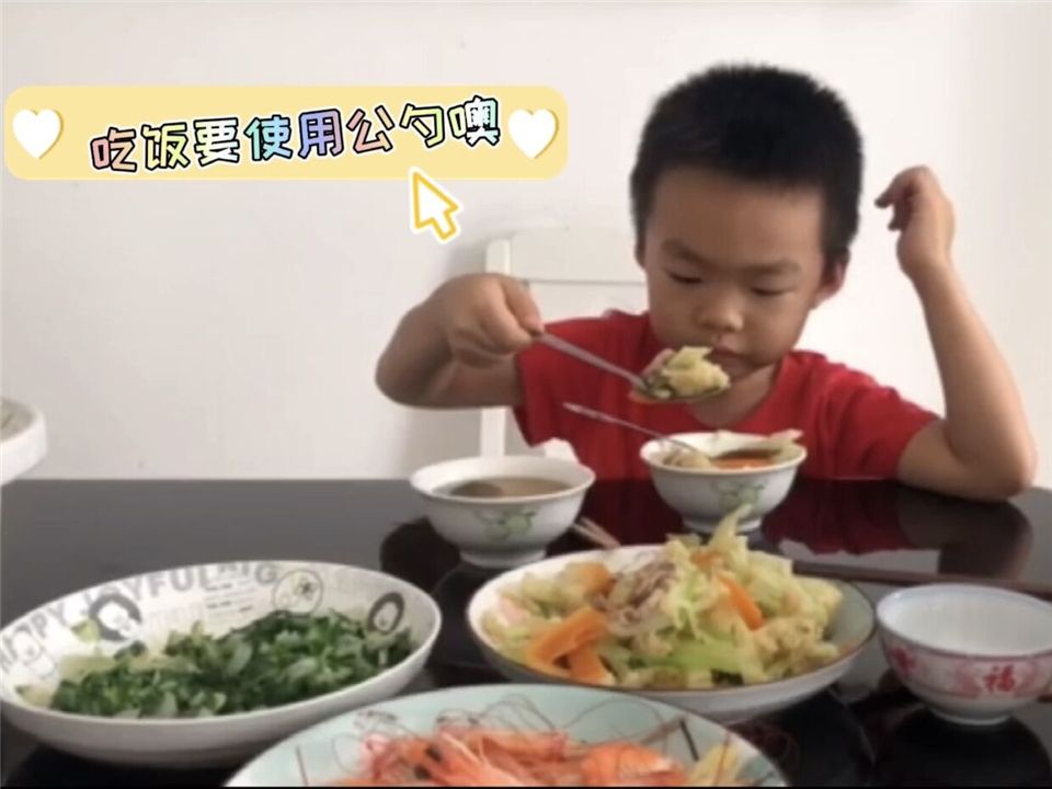 餐前摆碗筷、请长辈先吃、专心吃饭不交谈、使用公筷、饭菜香香不挑食、餐后擦桌子收洗碗筷……家庭餐桌礼仪,我们做到了!