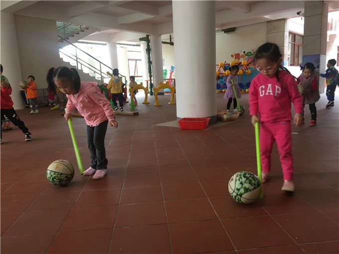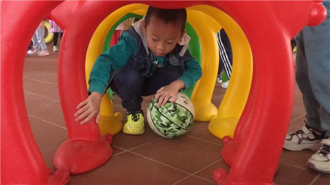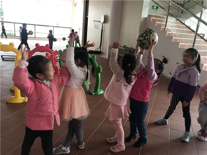 除了基础的篮球技法,幼儿园的现有材料也让孩子们玩出了花样,大家玩得津津有味。