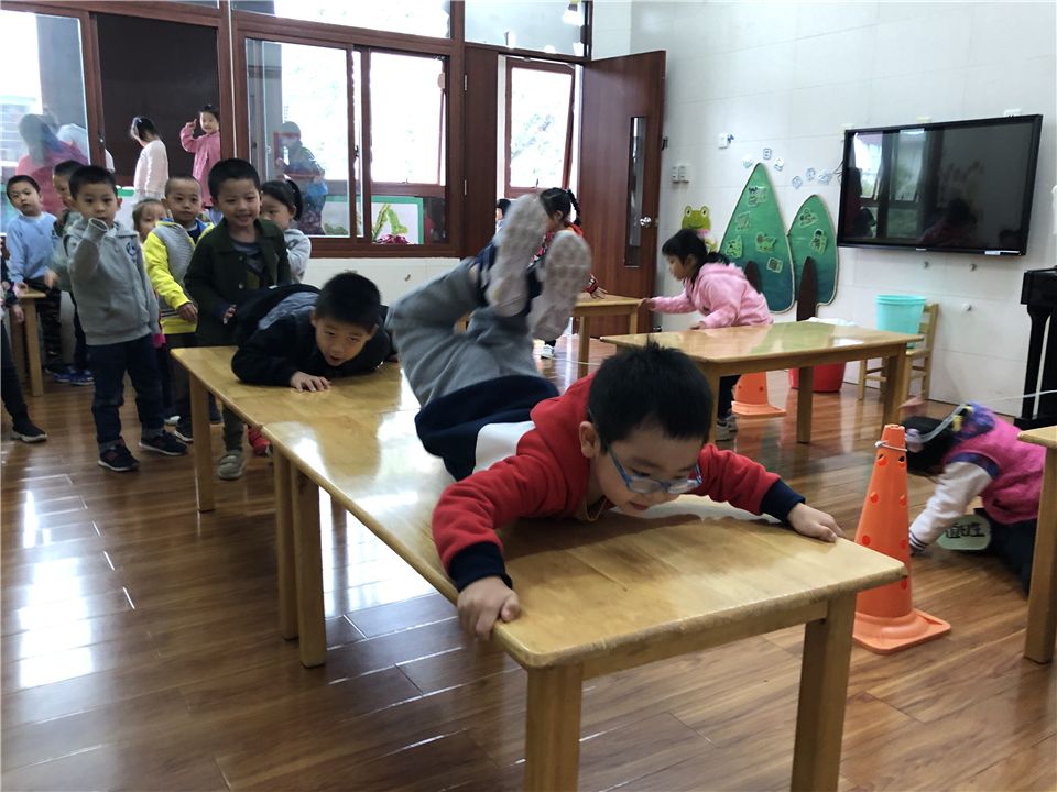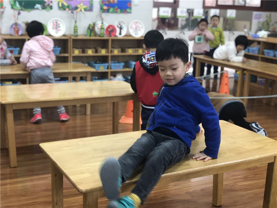 在教室,桌子成了“百变户外玩具”,来看看小朋友是怎么设计的吧!