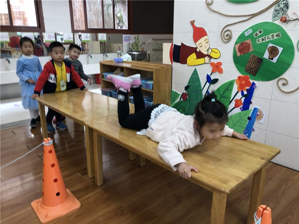 小朋友们运用生活中随处可见的桌子椅子也能玩出大花样,同样的材料,经过他们的创意设计,变成了一道道难度不同又富有趣味性的闯关游戏,在这样的雨天里,不用发愁户外活动无法进行啦,为中三班的小朋友点赞吧!