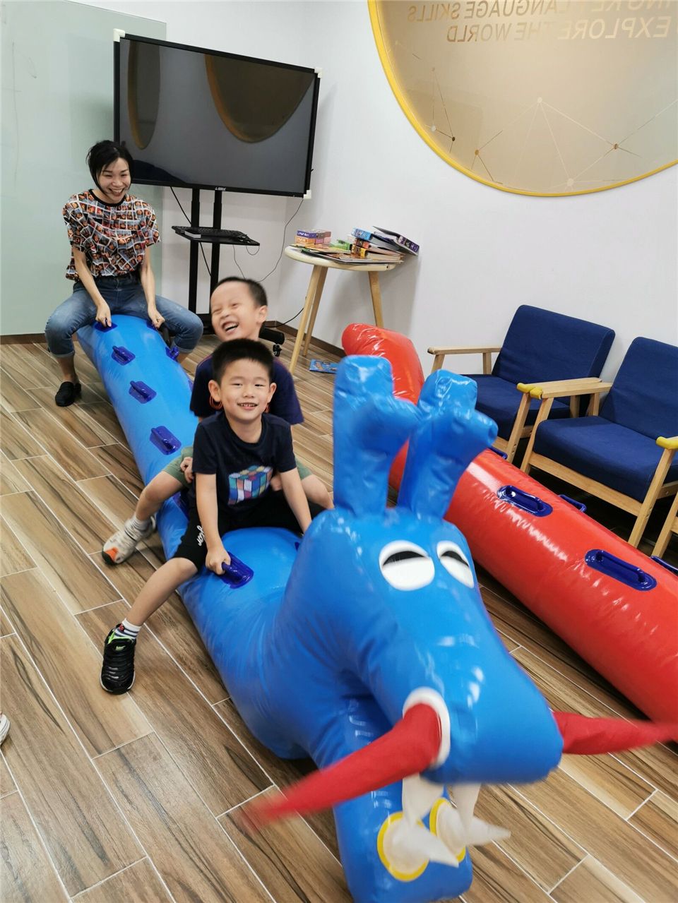 端午时节,龙舟赛也是不可错过的活动,虽然疫期的特殊孩子们没能现场进行龙舟赛,但他们还是以自己的方式体验了一把“赛龙舟”,哈哈……好开心呐!