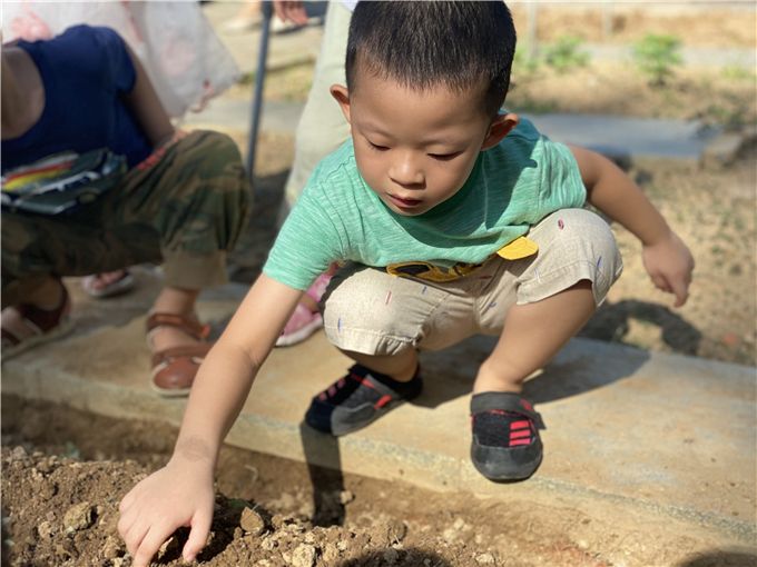 来到中六班的种植区,新翻过的泥土正散发着特有的清香,等待着小朋友们的到来。陈老师告诉小朋友,播种之前要先松松土,拔草。看着老师认真的拔着杂草,熟练地用铲子松着土,小朋友们也缤纷两路有的小朋友拔杂草,有的小朋友则迫不及待地拿着小铲子齐心协力开始做种植前的准备工作。一会儿功夫,菜畦就整理好了。