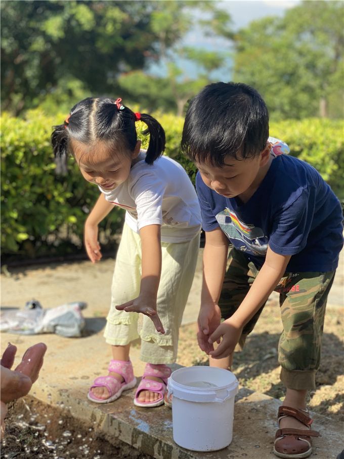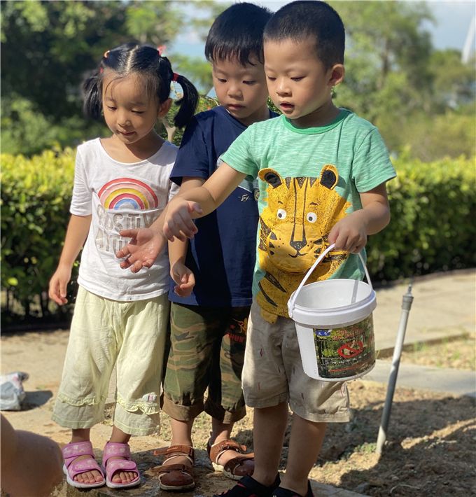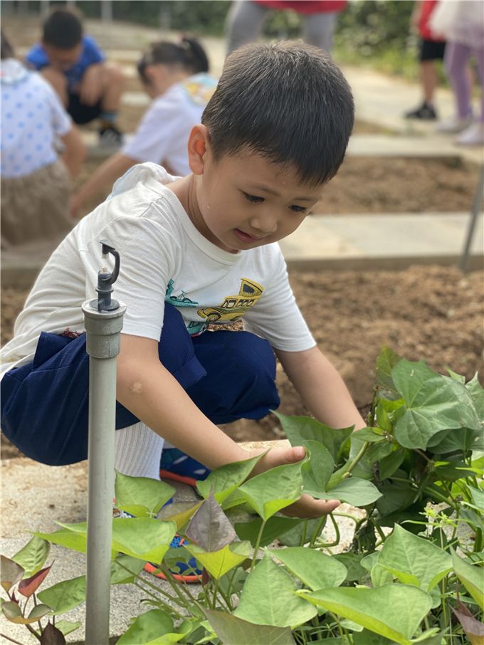 迎着清晨的阳光,中六班的小朋友们哼着小曲,手拉着手向小山坡开心农场进发。小山坡的小草已经绿了,不知名的小花在暖暖春风的吹拂下,摇曳着小脑袋,好奇地看着这一切。而小朋友们就像那一群春天里的小燕子,带着春的气息,传播着小山坡开心农场的秘密:“今天我们要去播种哦!”“我最喜欢去小山坡开心农场了”“以前我们的菜地里还长了好多的地瓜呢……”