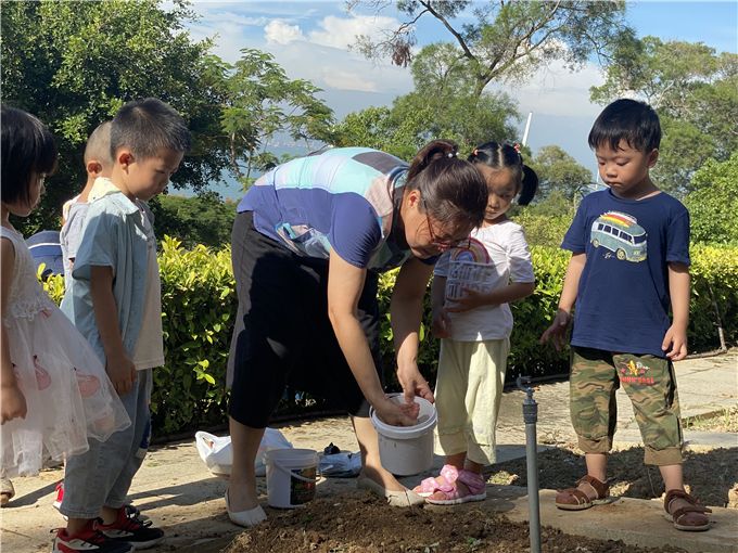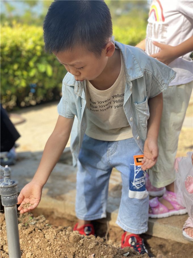 “我们知道啦,我们知道啦!”小朋友们按耐不住,行动起来了:用小铲子松土——“这是种子的家”;小心翼翼地放下种子——“种子宝宝要睡觉啦”;用铲子或小手把土轻轻地洒在种子上——“给小种子盖上温暖的被子”;轻轻地浇水——“种子宝宝喝喝水,快长大”。孩子们一边动手一边和种子宝宝说着话,一颗颗希望的种子也在心中萌发。