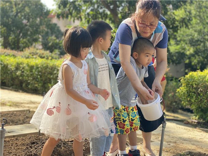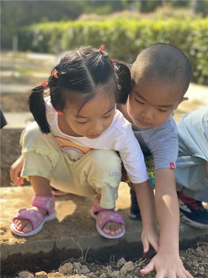 “老师老师,这菜地就像种子的家,一会我们就把种子放到它们的小家里”蛋卷说道。“好呀好呀,我们一起动手把种子送回家吧。”这边的话音刚落,那边就争先恐后地伸出小手,拿着种子小心地往菜畦上撒。接着老师一边用手推拨着泥土盖住小种子一边对小朋友们说:“我们要给种子宝宝盖上薄薄的小被子,小被子一定不能太厚哦,要不种子宝宝会不舒服的。”