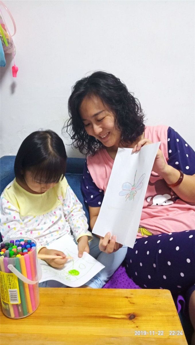 “妈妈,你的蜻蜓画的太快了不漂亮,我要把蜻蜓的翅膀画的又大又好看。”
