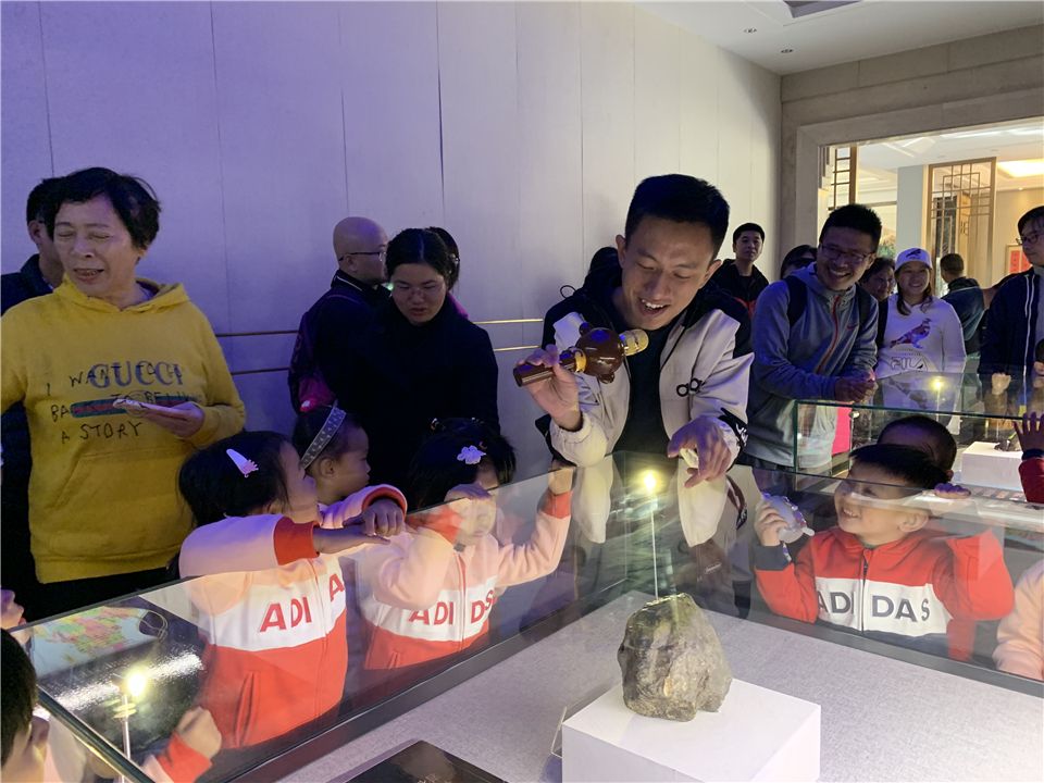 陨石博物馆内馆存各类珍稀陨石,在这里宝贝们不仅仅可以亲眼看到这些平时飘荡在太阳系、星空中的天体,甚至还有些可以动手摸一摸,近距离感受这些“天外来客”。场馆的装潢也让人置身于浩瀚星空一般,沉溺于神秘与美妙之中。