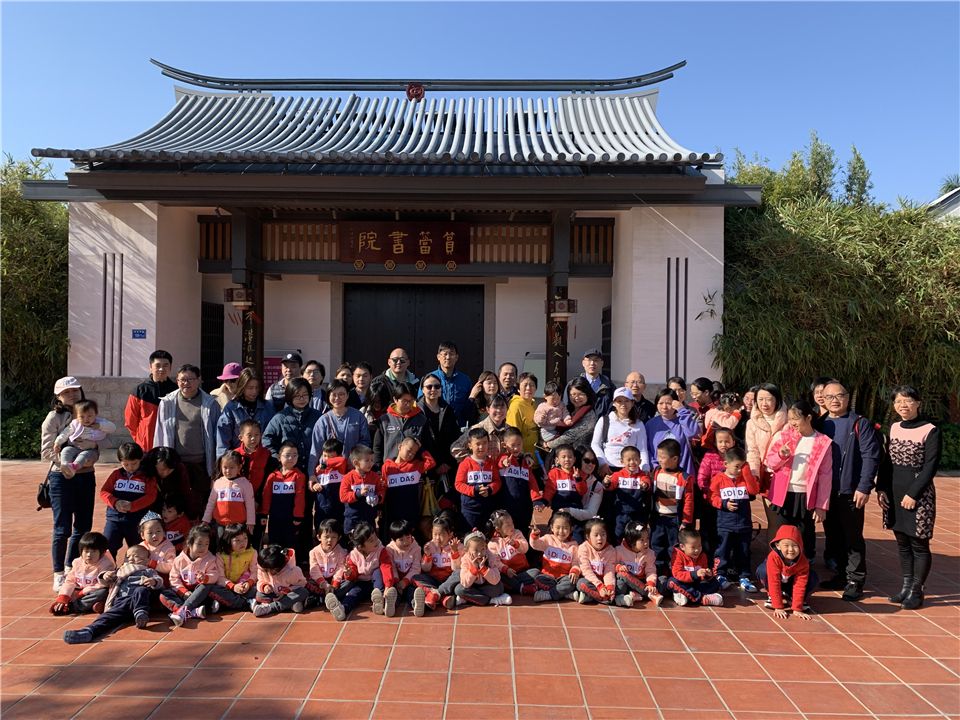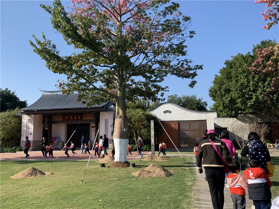 宝贝们和家长们到齐后,先向陨石博物馆出发。我们踏过石板路,穿过雅竹林,陨石博物馆便映入眼帘啦!