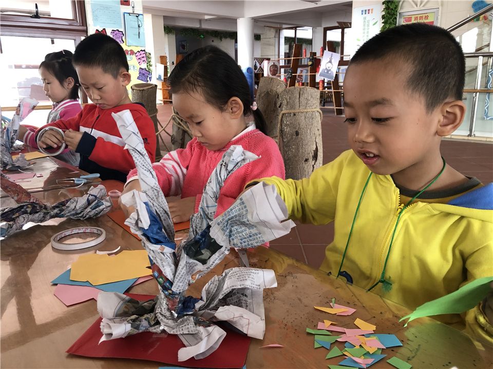宝贝们看了红树林,也想做“红树林”。于是我们结合班级主题“树”,在美劳室黏黏贴贴和画画。在宝贝们灵巧的小手下,一张张报纸化作一份份独一无二的小艺术品!