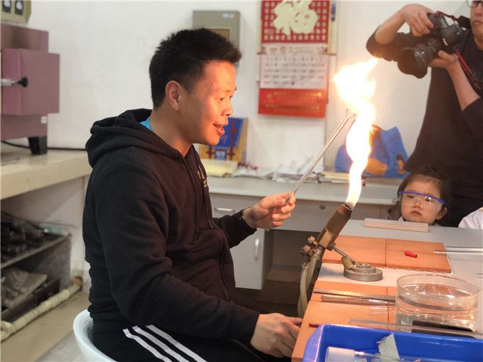 声“哥哥姐姐们做实验的工具叫什么呀?这些工具从哪里来的啊?”带着这些疑问萌娃们来到了化院的玻璃吹制室。我们一起去瞧瞧吧!