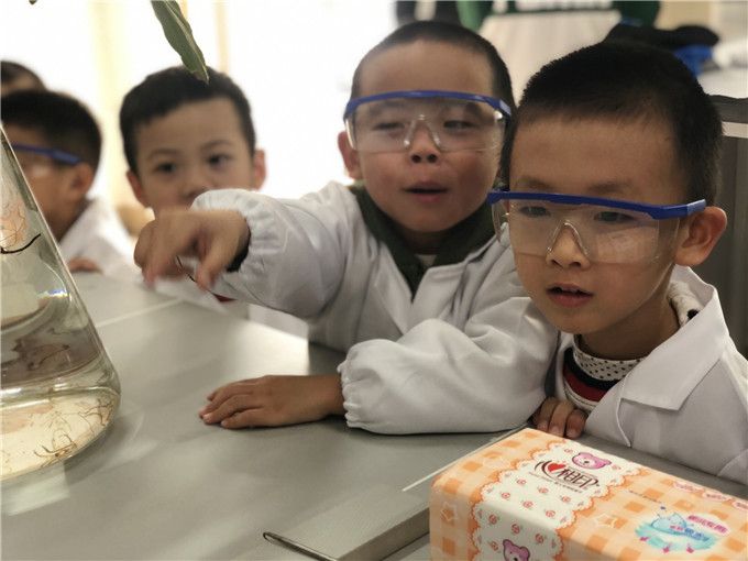 中八班的萌娃们上次参过完化院回到幼儿园后对化院里哥哥姐姐们使用的各种实验用品十分感兴趣。常听到孩子们三三两两的讨论