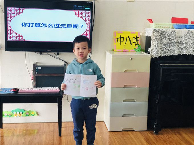 “老师中国人是要吃很多好吃的,可是我去年元旦是跟爸爸妈妈出去玩了。”“我跟爸爸妈妈去妹妹家串门了。”“我回老家了,在家里玩没有出去。”萌娃们回忆着上一个元旦的庆祝方式,发现不是只有吃很多好吃的方式来庆祝元旦。