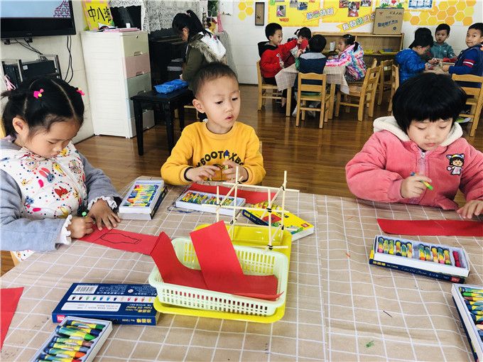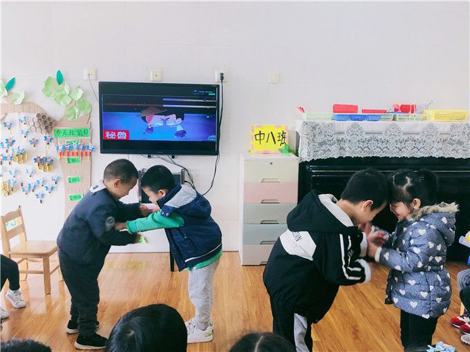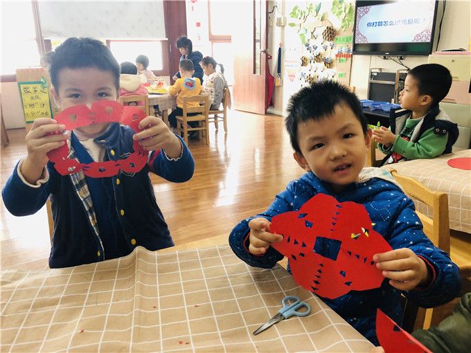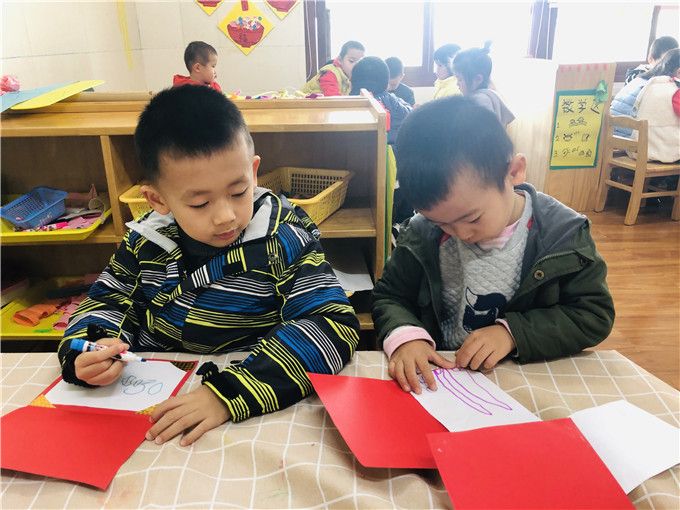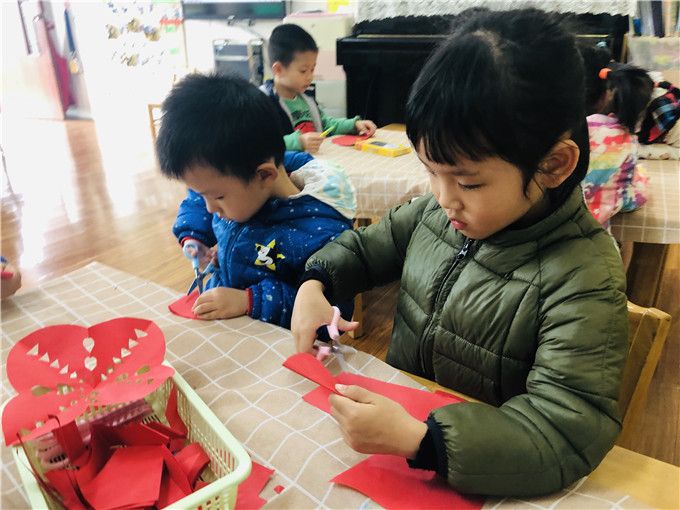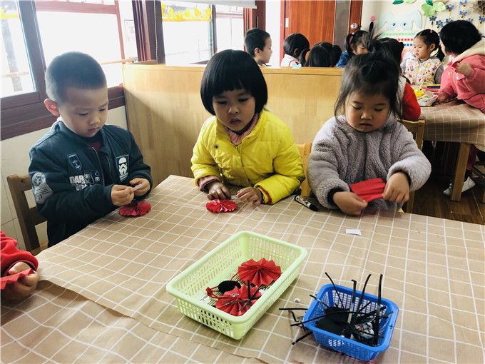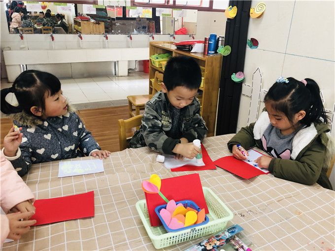 咿咿呀呀的商量声,咔嚓咔嚓的动手声,萌娃们制作着元旦的“礼物”。