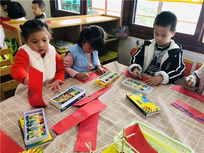 “今年是鼠年,我们做些可爱的小老鼠吧!”“我想做美丽的贺卡送给我的好朋友。”“我们来给灯笼画上漂亮的图画吧!”“我会剪纸,我们剪些漂亮的窗花吧!”