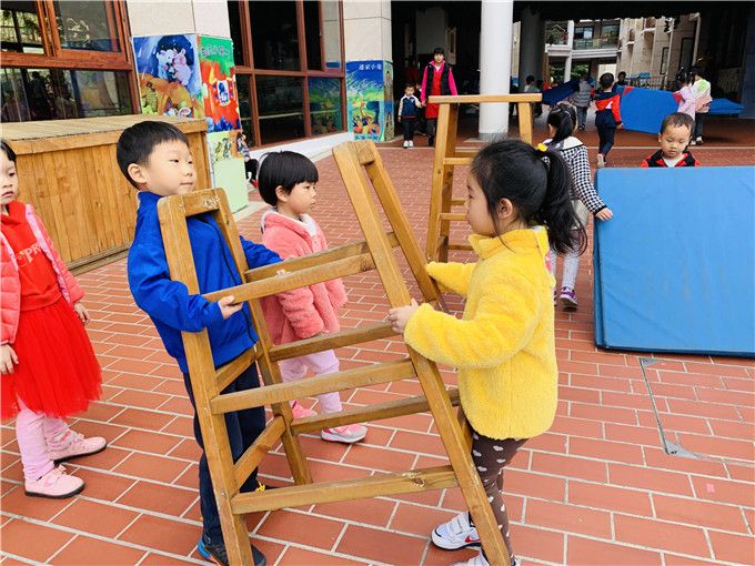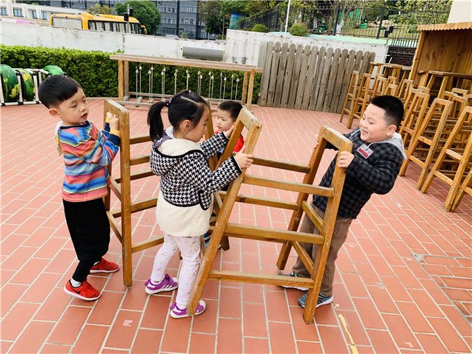 “我去抬垫子、我去搬木架,我去.......”话音刚落,萌娃们三三两两的合作了起来。
