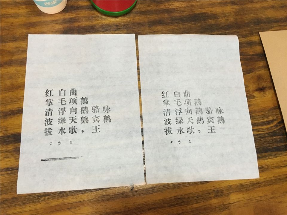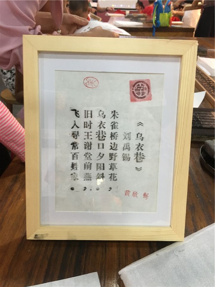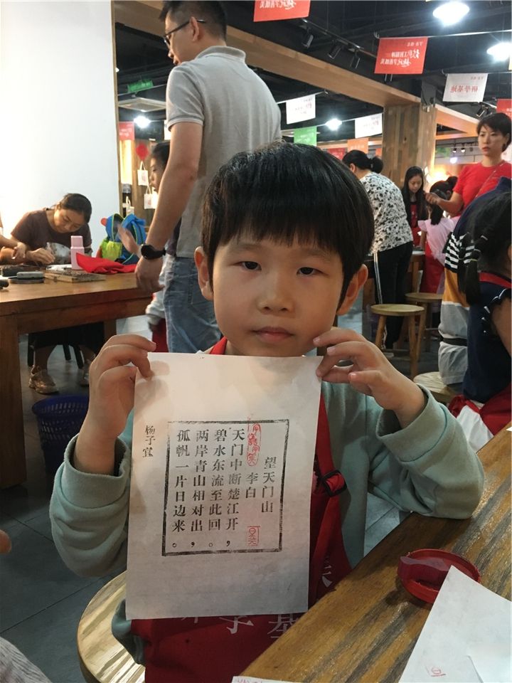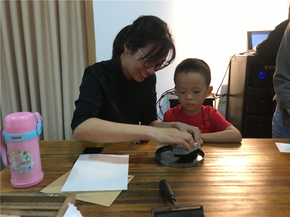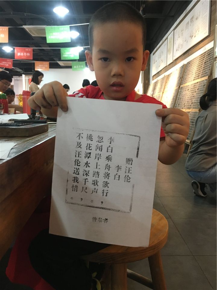 亲手完成明信片的印刷,接下来,到了萌娃们和爸爸妈妈的亲子时光啦——活字印刷的亲子体验。瞧,萌娃们和爸爸妈妈都跃跃欲试,拿出准备好的纸和桌子上的工具,准备开工咯!一起动手刷墨、印刷、触摸一枚枚的活字,经过几次的体验,一张张印刷作品在短短几分钟时间内跃然纸上,萌娃们手捧着一张张自己的印刷作品开心极了!有《春晓》、《咏鹅》等诗词,萌娃们感到既惊讶又惊喜。