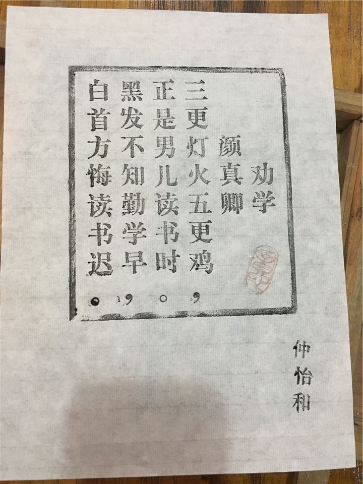 瞧,一张张印刷作品,印上名字和盖上红章,装在相框里,怎么样?很美吧……